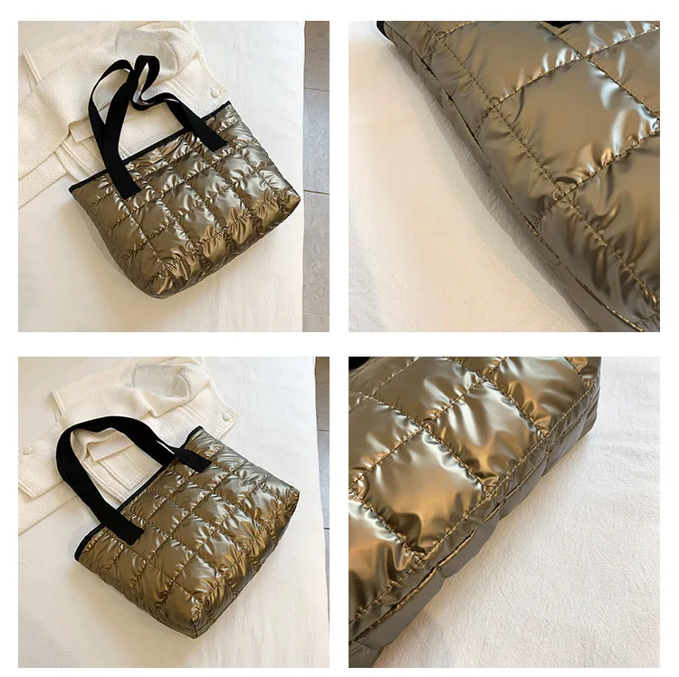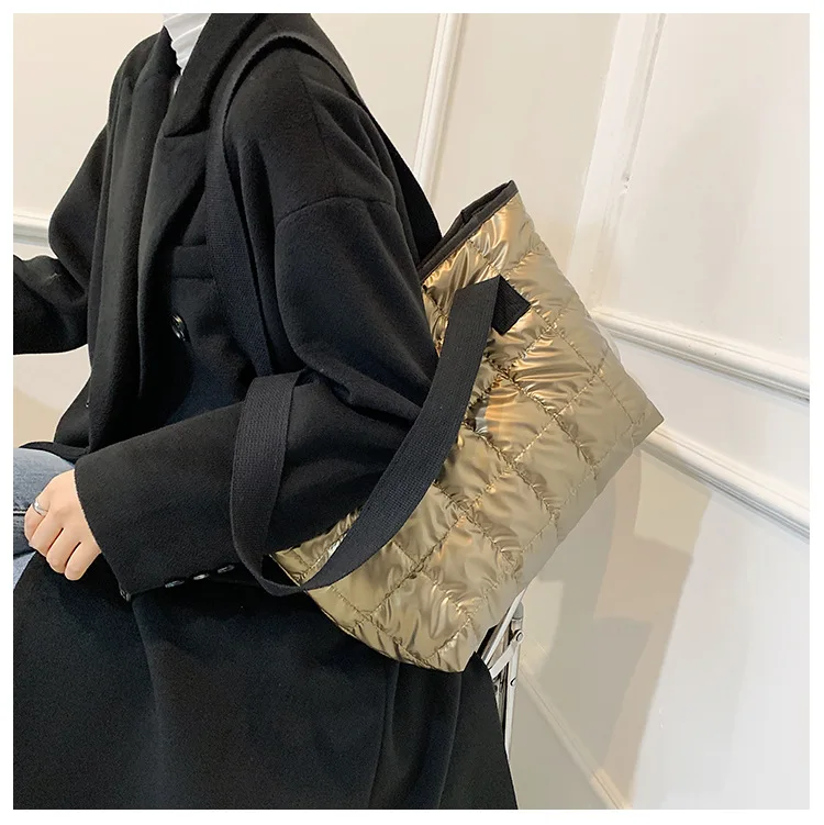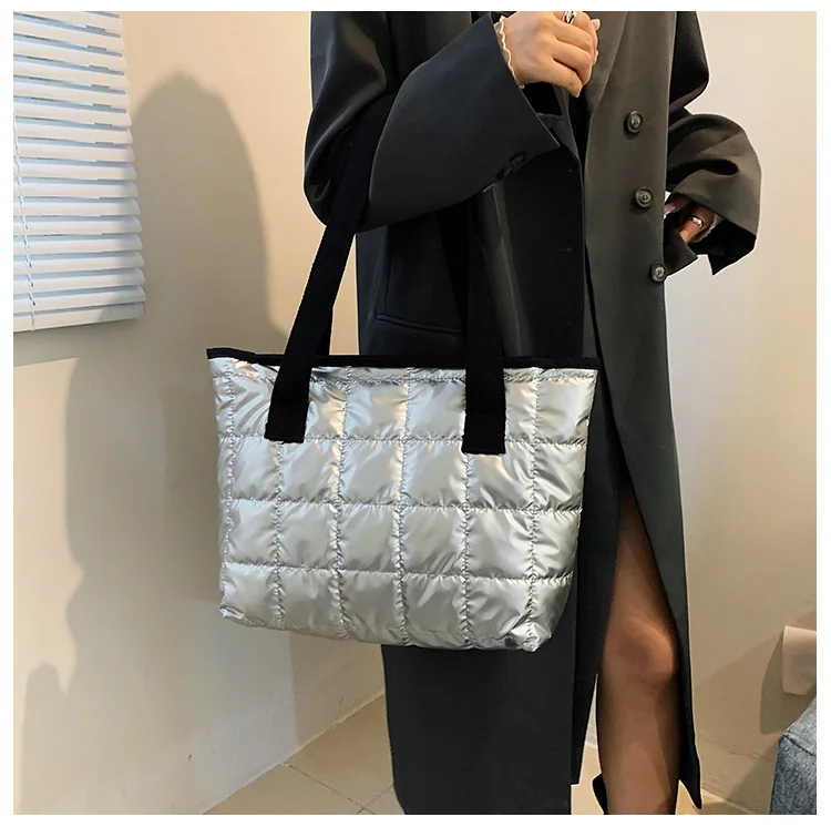 Модная большая сумка-тоут с подкладкой, дизайнерская клетчатая женская сумка на плечо, вместительная Роскошная Нейлоновая пуховая Хлопковая Сумка, зимний кошелек 2021