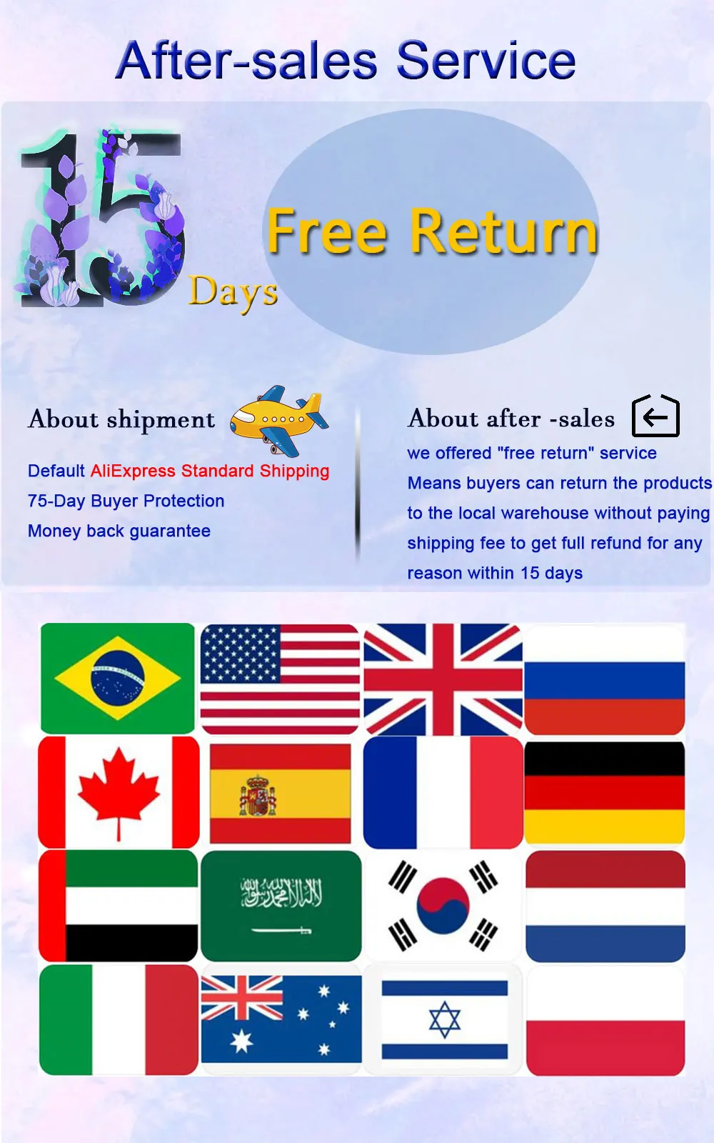 Потому что мы предлагаем услугу «бесплатного возврата» для вашего заказа, означает, что если вам не нравится продукция, вы можете вернуть товар на склад вашей страны без оплаты стоимости доставки. Абсолютно бесплатно .. Вы можете получить полный возврат,