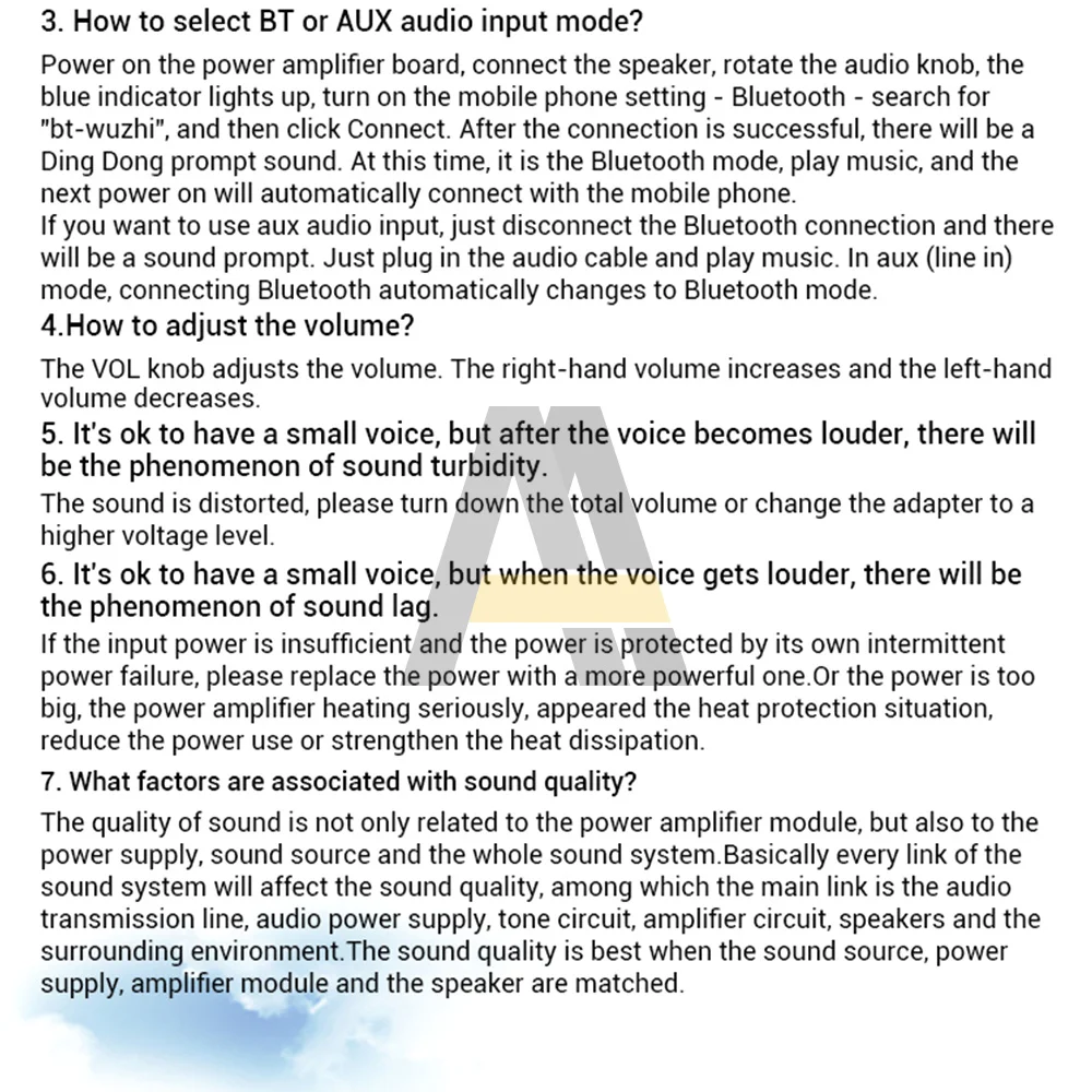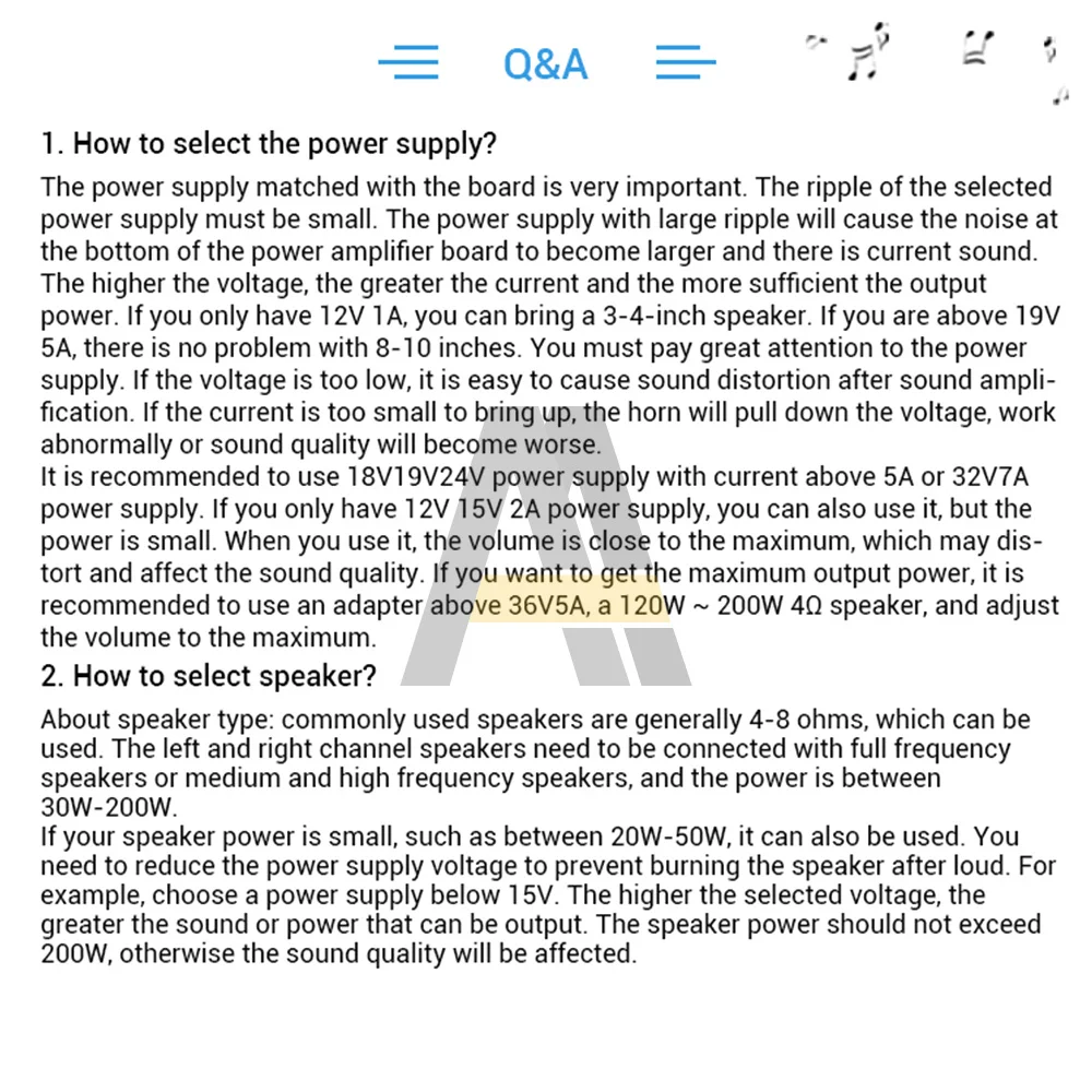 3. Когда вход аудиосигнала достаточно большой, а напряжение/ток источника питания достаточно велик, будет достаточно выходной мощности.