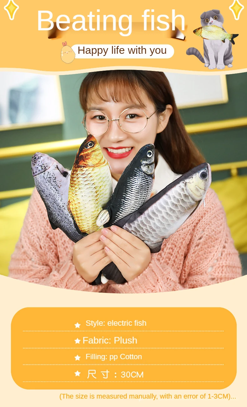 Электрическая прыгающая рыба 28 см движущаяся кошка плетеная рыбка игрушка флоппи игрушки для домашних животных Wiggle Motion Kitten Плюшевые Интерактивные упражнения