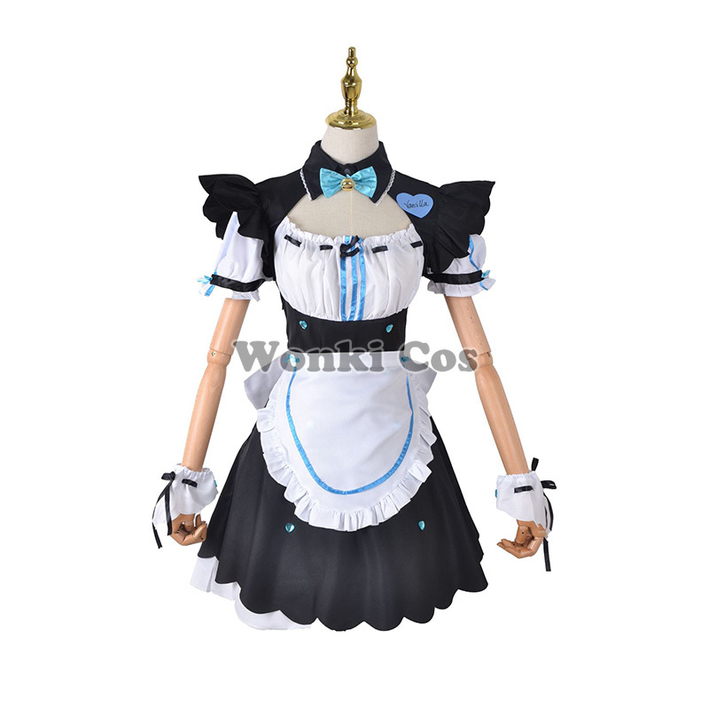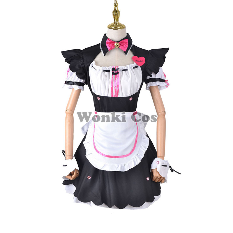 В комплект входит: платье + фартук + хвост + повязка на запястье + галстук-бабочка + головной убор + чулки + галстук