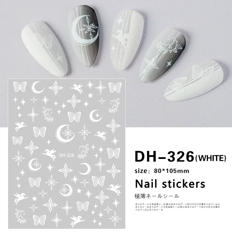 1 лист 3D белый/черный лак Стикеры пламя/кружево», «Луна», Паттен украшения для ногтей Клей милые Бумага часть ползунки наклейки #8*10,5 см