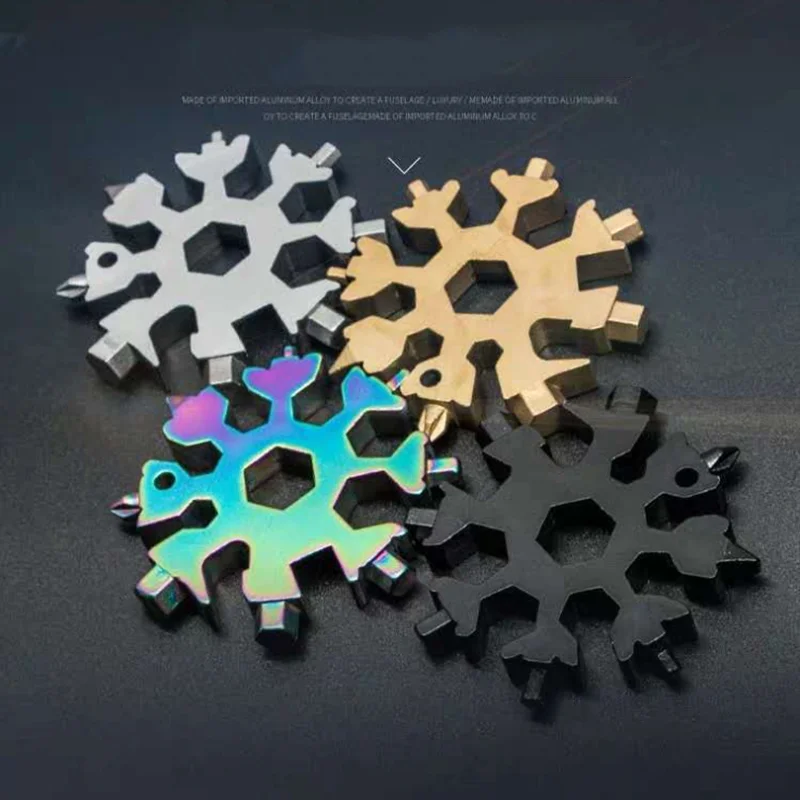 Portable 18 In 1 Snowflake Multi Pocket Tool Spanner Hex Wrench Multifunctional Camp Survive Outdoor Hike Key Ring Key Chain Festival Christmas Gift For Repair Tool