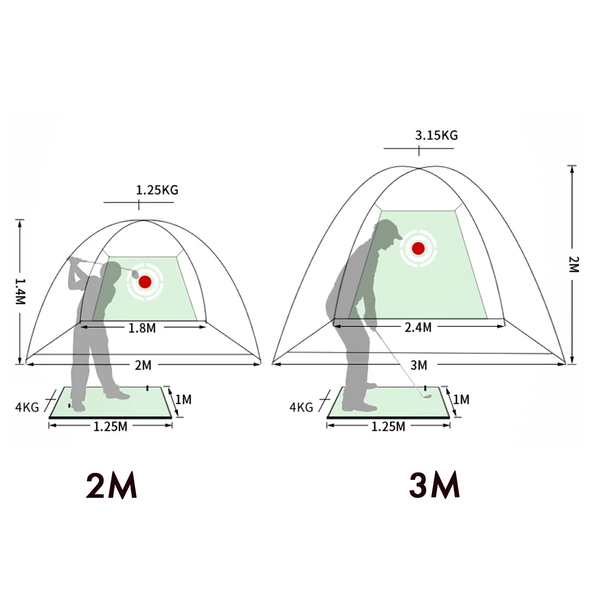 Размер: 2 м: ширина 200 см × Глубина сетки 100 см × высота сетки 140 см; 3 м: ширина 300 см × Глубина сетки 180 см × высота сетки 200 см