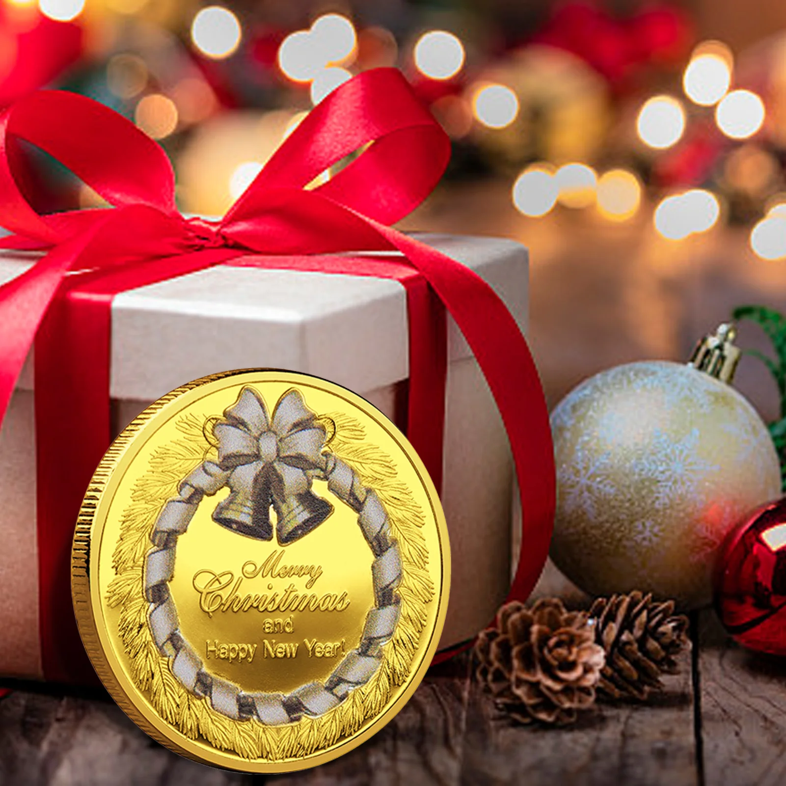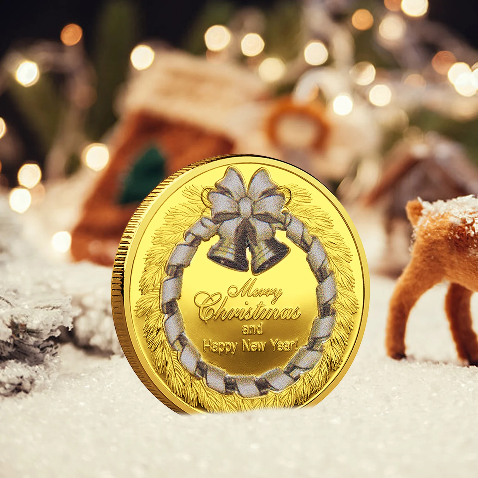 Коллекционная позолоченная сувенирная монета с рождественскими желаниями