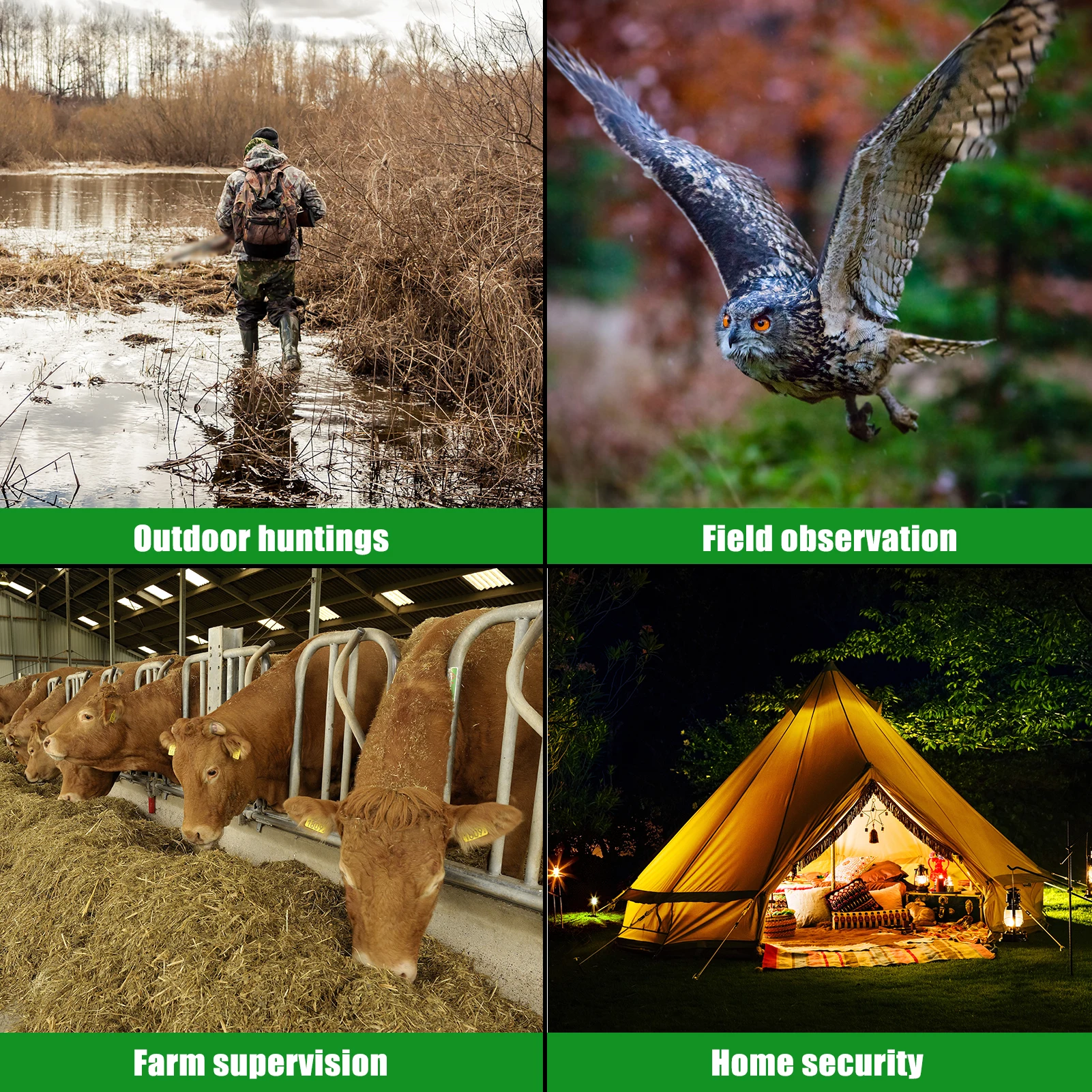 Широкий спектр применения: подходит для наблюдения за фермой, охоты на открытом воздухе, наблюдения за полями и так далее.
