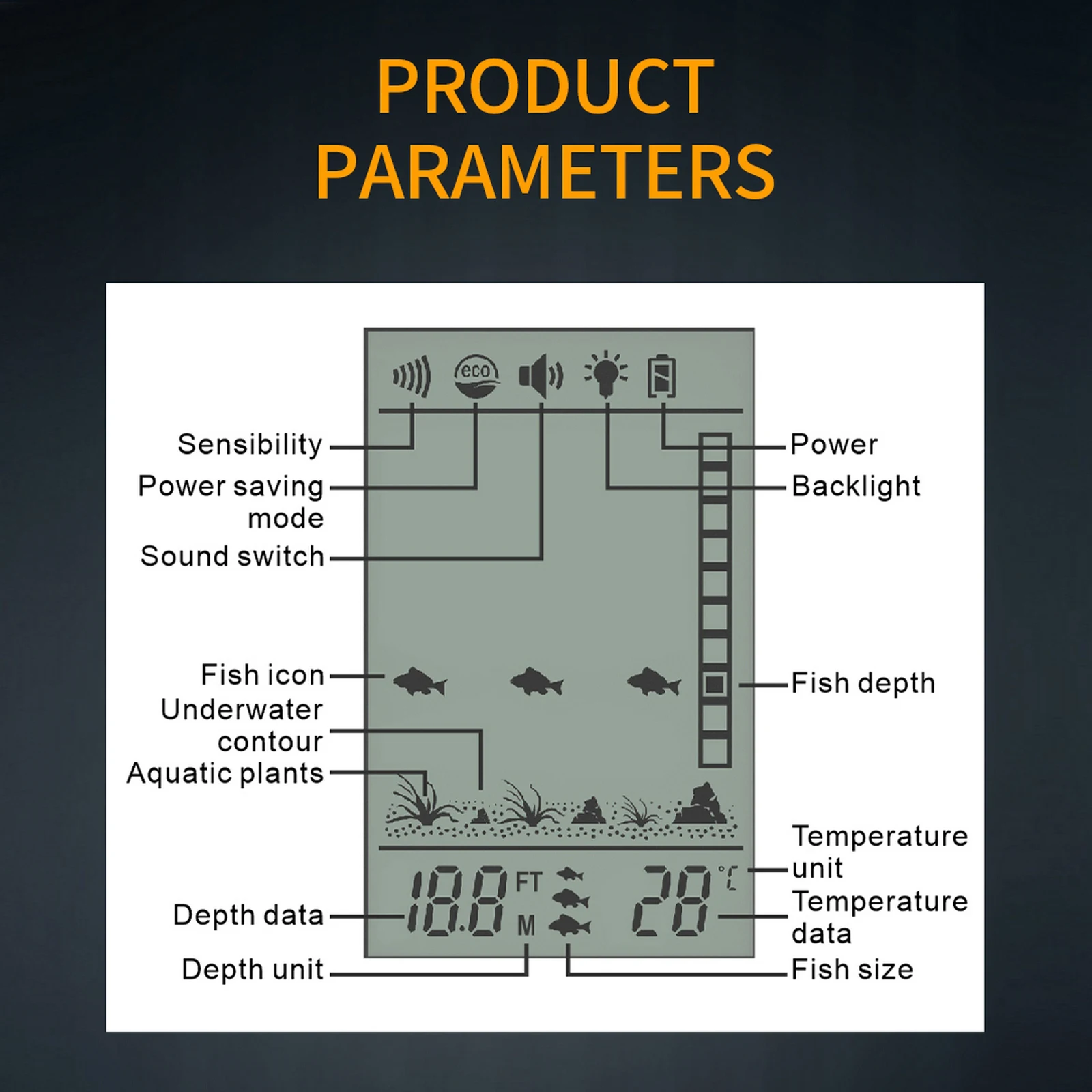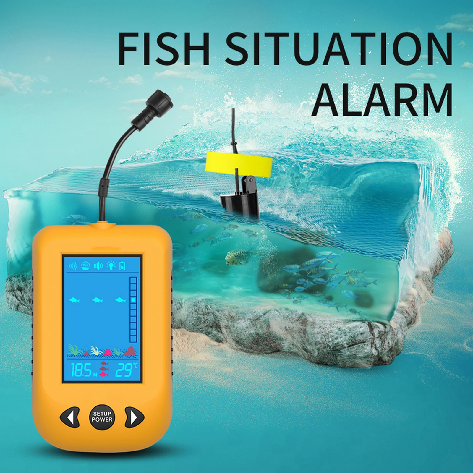 Беспроводной рыболокатор является портативным, экономичным и надежным и может использоваться рыболовами для определения положения и размера, глубины под водой и контура дна рыбы.Зонд * 1