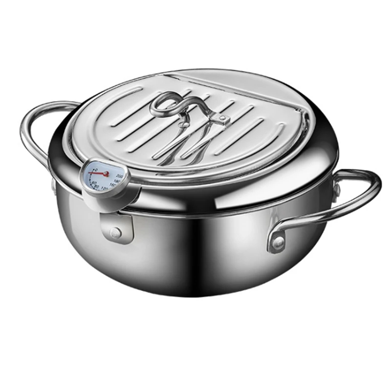 [Точный контроль температуры] Прикрепленный термометр делает контроль температуры масла более точным, в зависимости от температуры масла, готовьте еду лучше на лучший вкус и приносит вам более вкусную еду. (Не стирайте термометр с водой, подождите, пока не смочите, протрите его бумажным полотенцем)