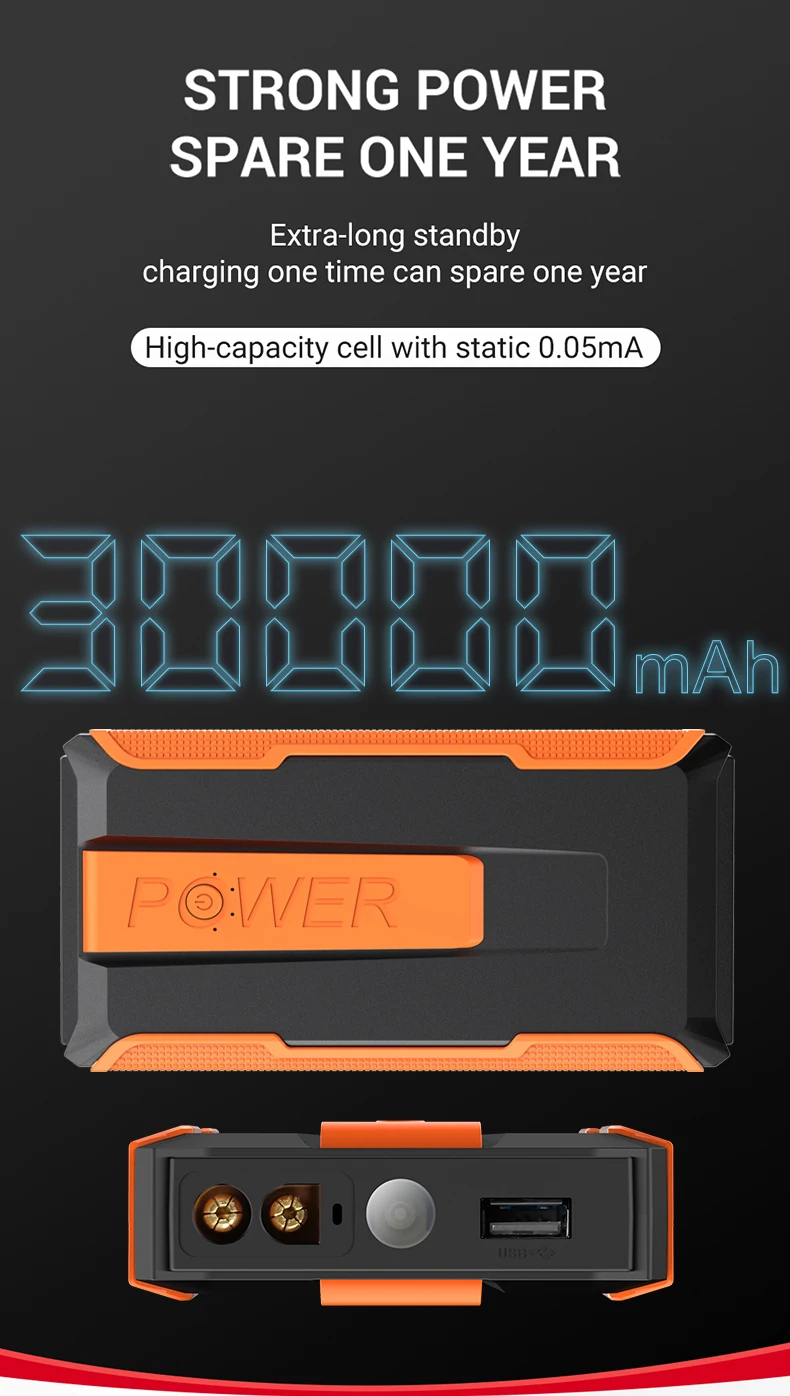 30000 мАч, большая емкость аккумулятора, ток 1200 А