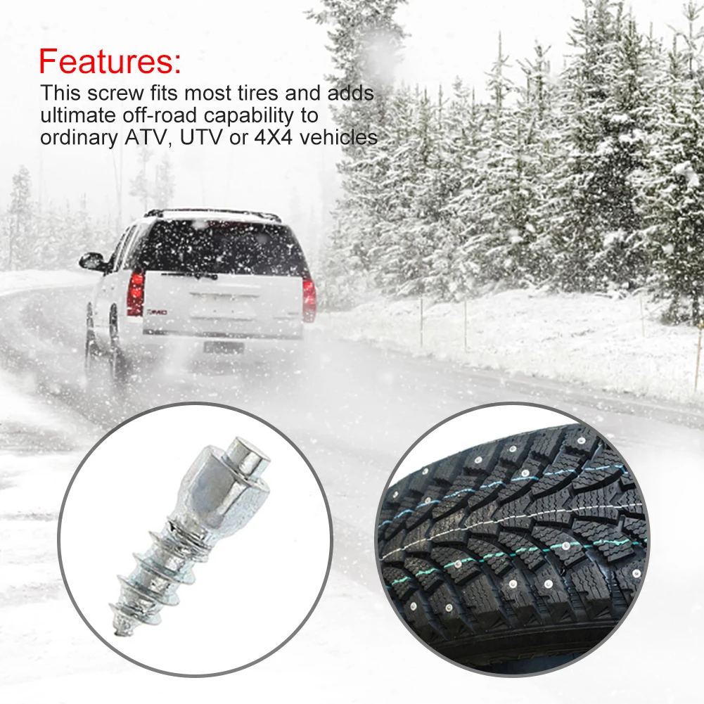 Feature: This screw fits most tires and adds the ultimate off-road capability to the average ATV, UTV or 4X4 vehicle. It brings good anti-skid performance to your tires. These tire studs are made of hard metal and are strong and durable. It has low ground pressure and minimal environmental impact. They are easy to install using certain bits and fit well with your vehicle's tires. During installation, please select the right size of the new studs according to the thread depth of the tire. Specification: Name: Car Tire Anti-Skid Screws + Tools Material: Tungsten Steel Color: Silver Size: 12*4mm/0.47*0.16in Diameter: 2mm/0.08in Quantity: 10/20/50pcs(Optional) Installation : Drill down (using a very small point) from the center of the selected knob into the tire. Drill one screw from inside to outside, if the angle is not perpendicular to the tire, it will protrude one side or the other, make one hole at a time and tighten. Place piping tape on the screw on the inside of the tire, sometimes it is best to use two layers of tape. Note: Due to the different monitor and light effect, the actual color of the item might be slightly different from the color showed on the pictures. Thank you! Please allow 1-2cm measuring deviation due to manual measurement. ![]() ![]() ![]() ![]() ![]() ![]() ![]() ![]() ![]() ![]() ![]() ![]() ![]() ![]()
