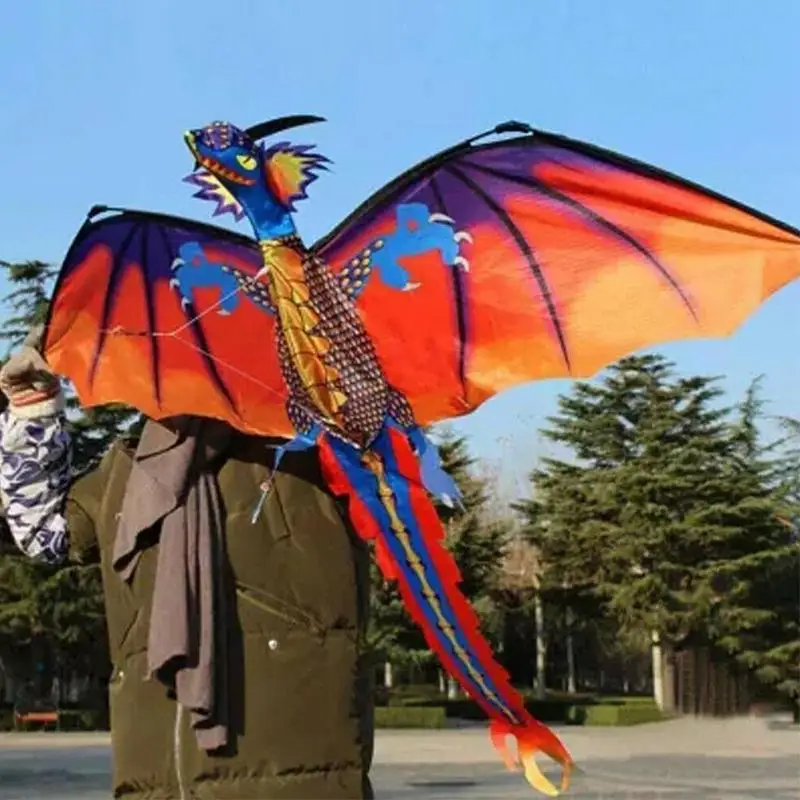 Outdoor colorful 3D dragon flying kite and 100m tailline children's toy