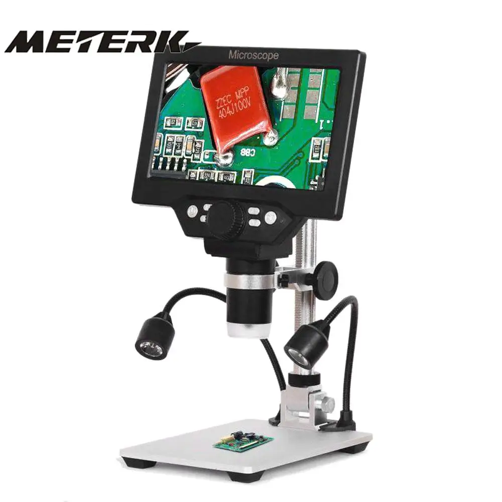 7-дюймовый ЖК-дисплей экран G1200 микроскоп, кронштейн может поворачиваться под любым углом наклона вперед и назад, чтобы удовлетворить ваши потребности, В то время как объектив поддерживает 1-1200X с непрерывным масштабированием. Он может определенно будет хороший помощник для вашей ежедневной работе.