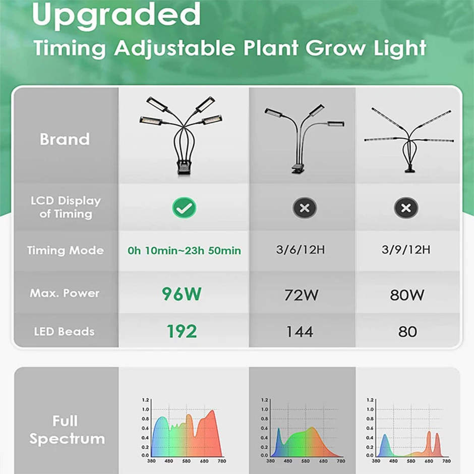 Светильник для выращивания растений внутри помещений, полный спектр лампа для выращивания растений с таймером дисплея, светодиодный светильник для выращивания цветов и суккулентов