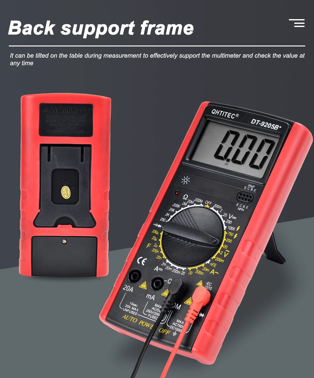 QHTITEC профессиональный мультиметр AC DC напряжение сопротивление тока Емкость диод тест er мультиметр Профессиональный с тестовой линией