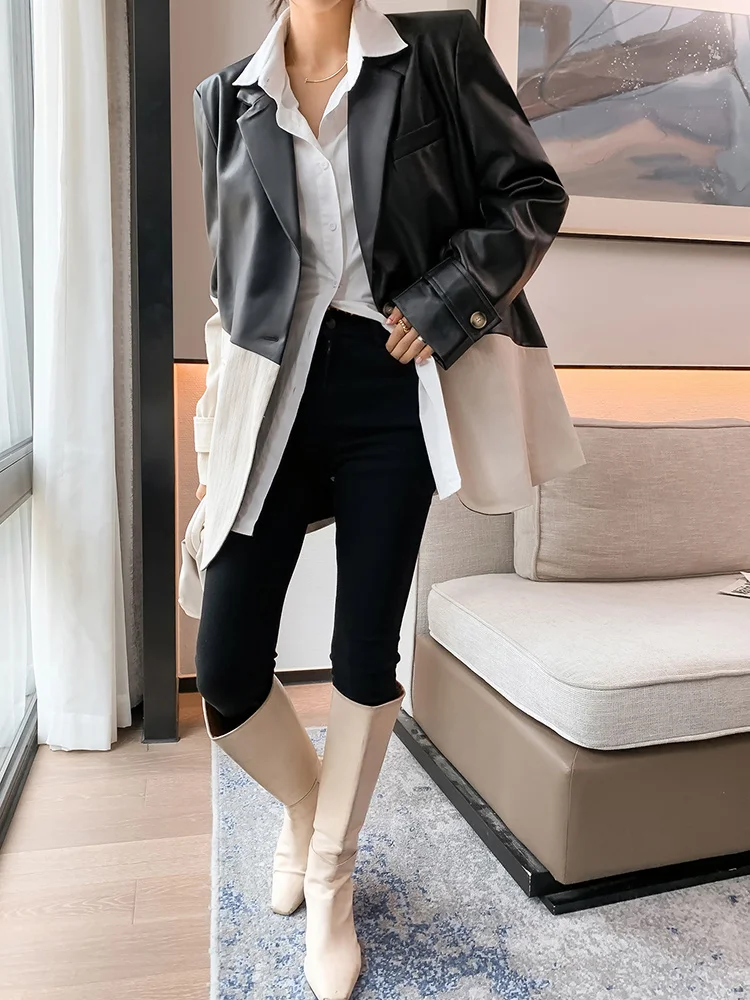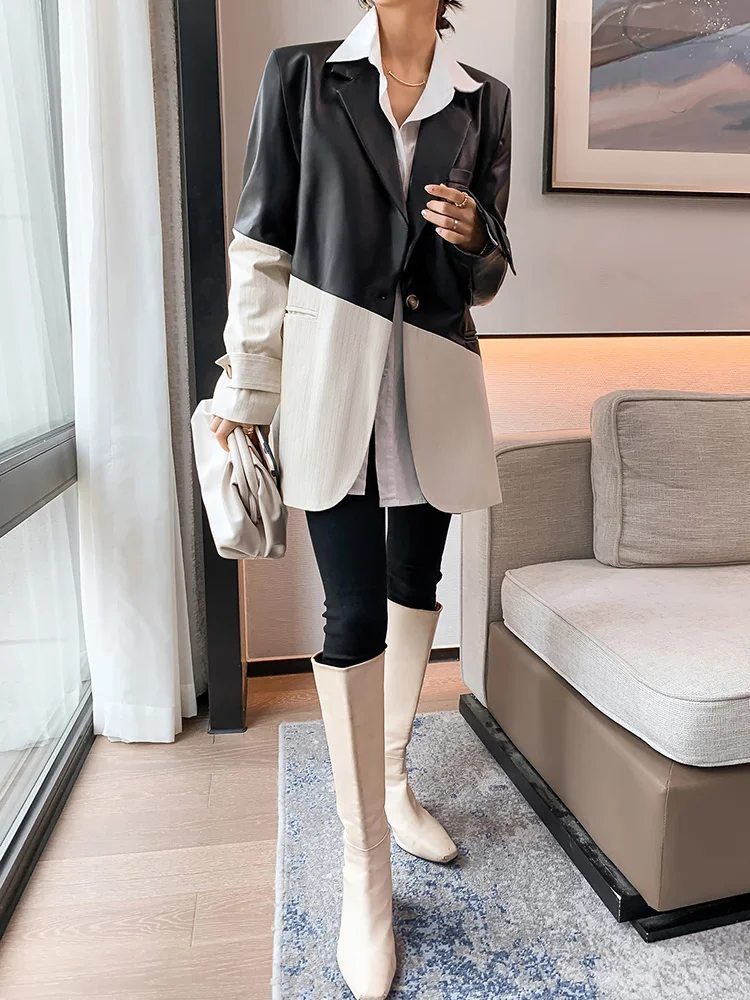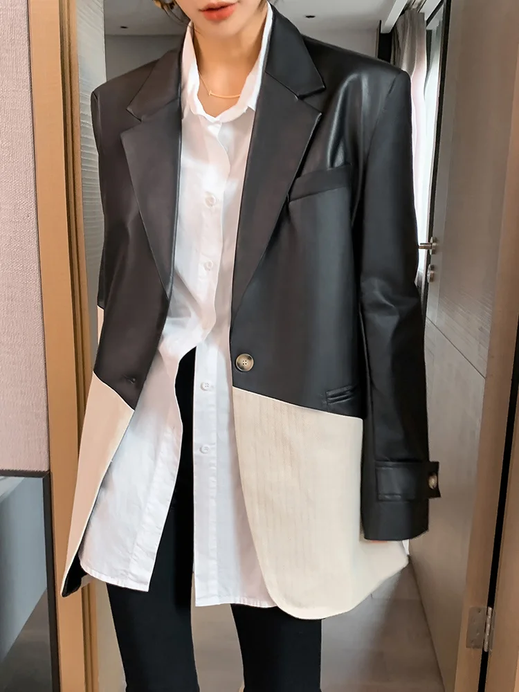 Женский Асимметричный Блейзер TWOTWINSTYLE Осенний блейзер с отложным воротником и