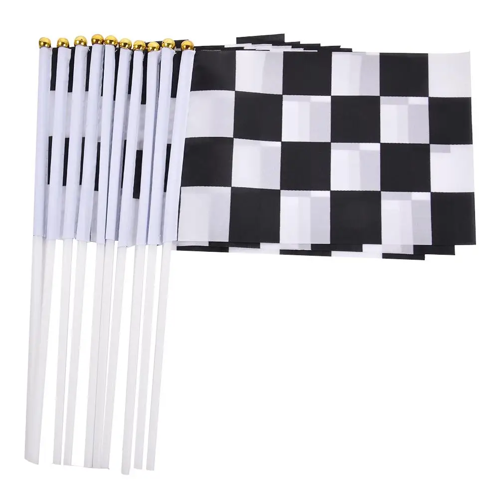 10 шт. клетчатый Гоночный флаг 100% полиэстер классический черно-белый клетчатый ручной миниатюрный флаг для гонок вечерние спортивные мероприятия