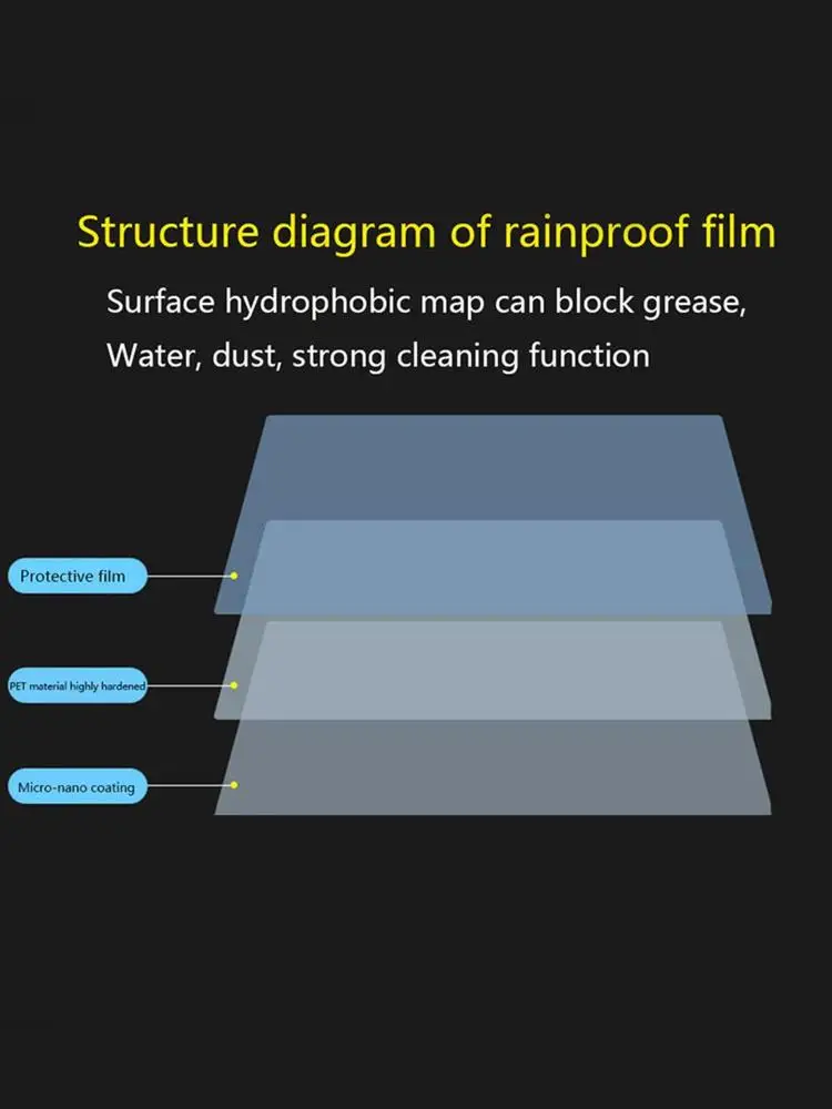 На основе высокопрозрачной ПЭТ-пленки из Японии. Поверхность подложки изготовлена из нано-водонепроницаемого и противотуманного материала.