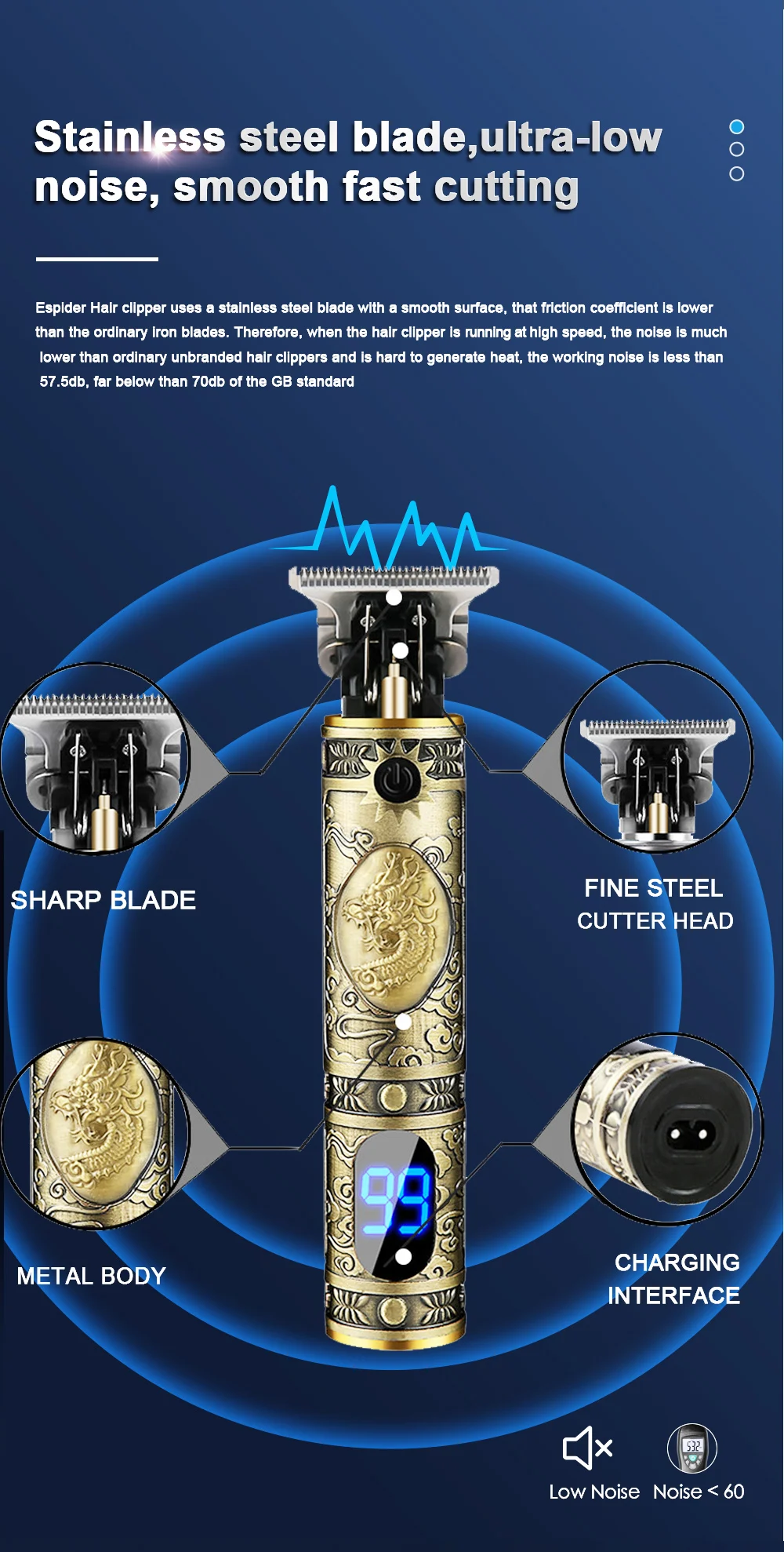 Отделка и бритье в стиле с ультра-тихой, перезаряжаемой цифровой машинки
