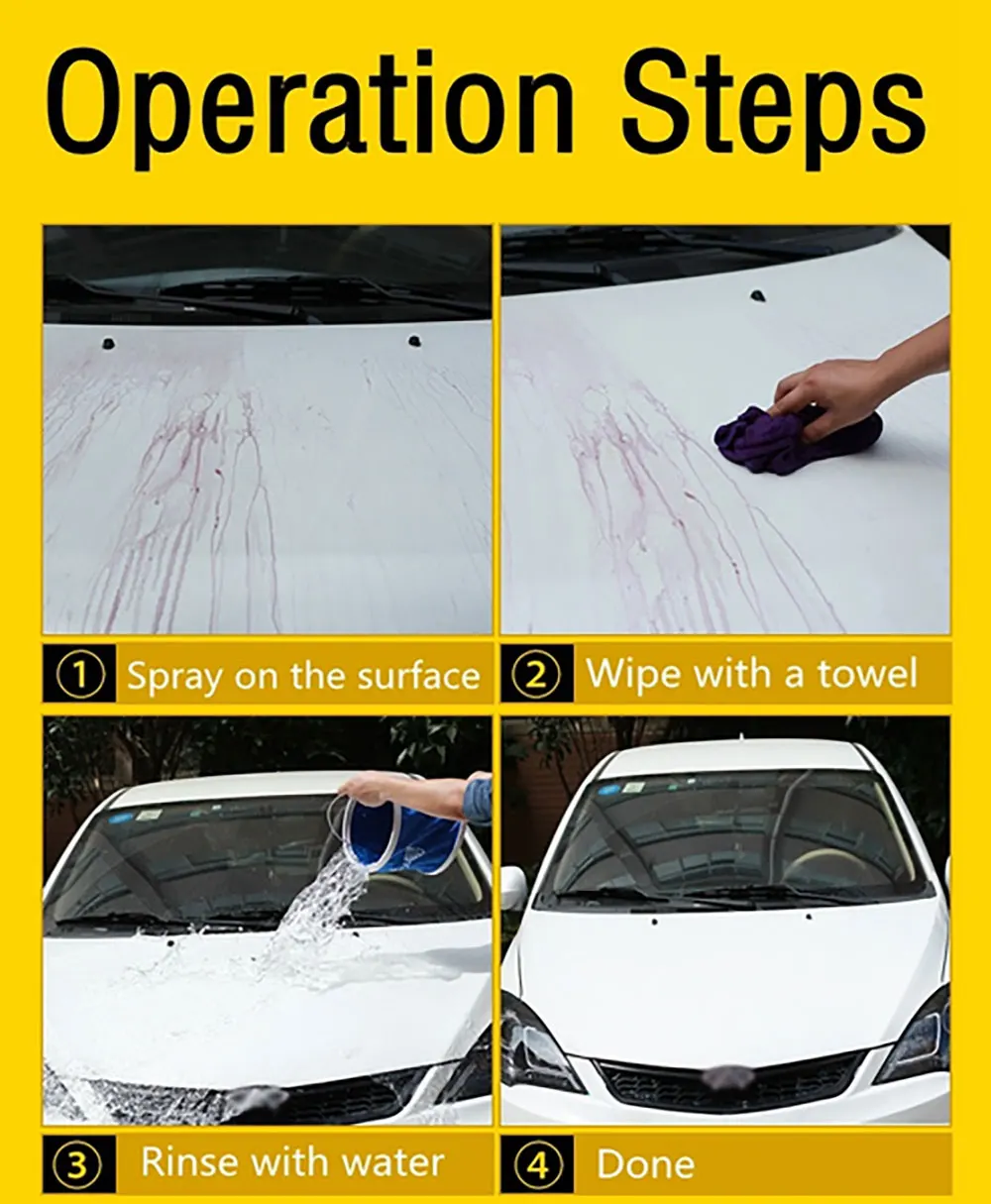 Easy to use. Spray and wait for 3-5 minutes, rinse it with a high-pressure water gun.