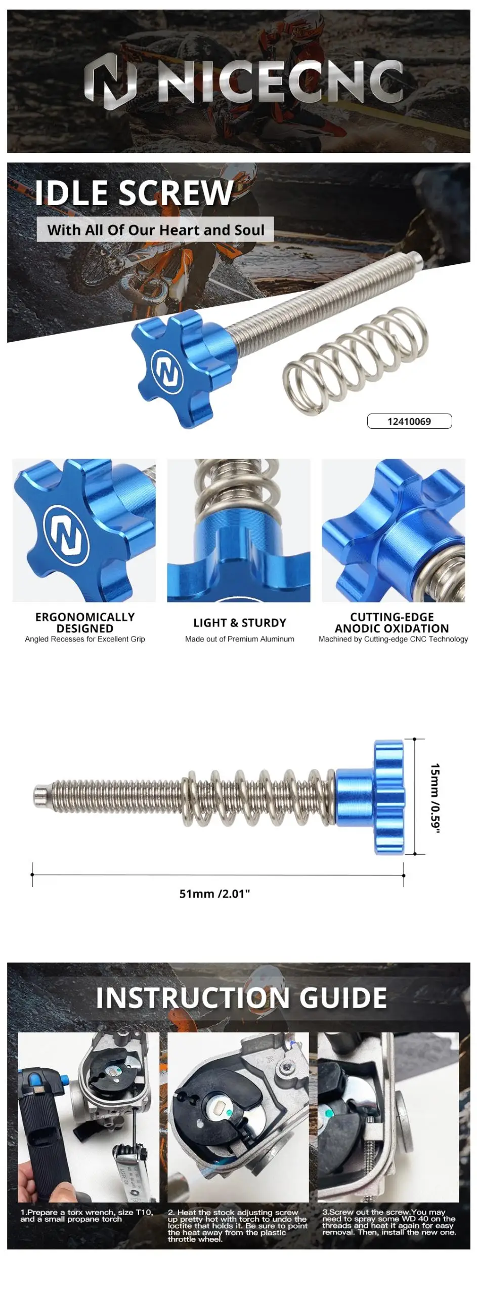 NiceCNC винт холостого хода для KTM/HQV 250/300 TPI/i моделей 2018-22 KTM 150XCW/HQV TE150 2020-22