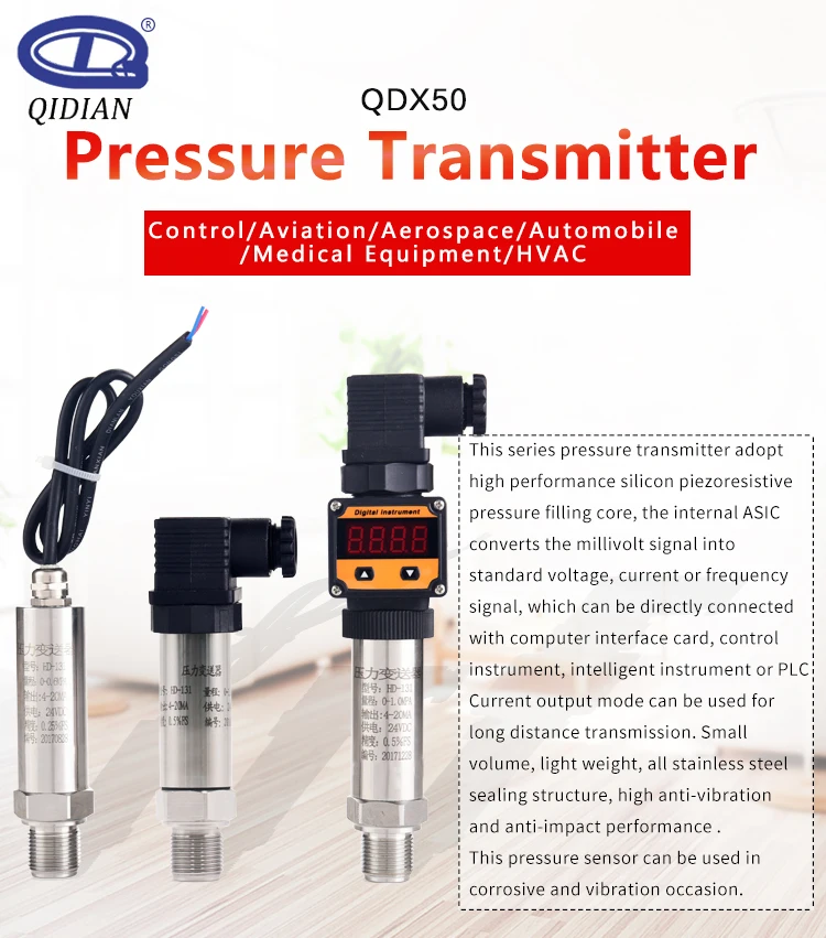 <3>. QDX50AПередатчик давленияПодходит для всех применений в процессе контроля, лабораторных и испытательных материалов оборудования.