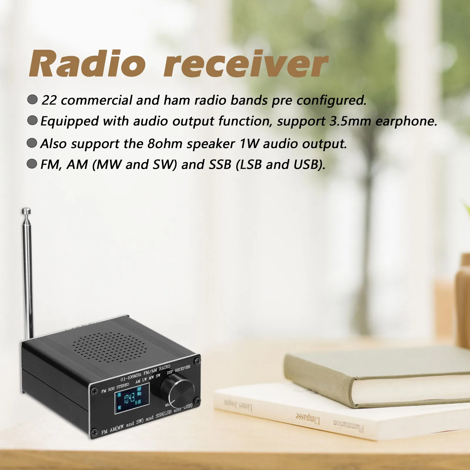 Это своего рода качественный полноволновой радиоприемник, цифровой дисплей, поддержка функции отключения питания. Оснащен аудио-выхода, поддержка 3,5 мм для наушников. Также поддерживает 8 Ом динамик 1 Вт аудиовыход. 22 коммерческих и ham Радио полосы предварительно настроены, вы можете использовать его свободно. Увеличение звука программного обеспечения и функции автоматического поиска радиостанций. Вы можете попробовать.
