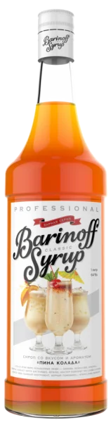 Сироп "Barinoff" Пина Колада имеет фруктовый ананасово-кокосовый вкус и аромат. Идеально подходит для приготовления алкогольных и безалкогольных коктелей. Хорошо сочетается с кофе.