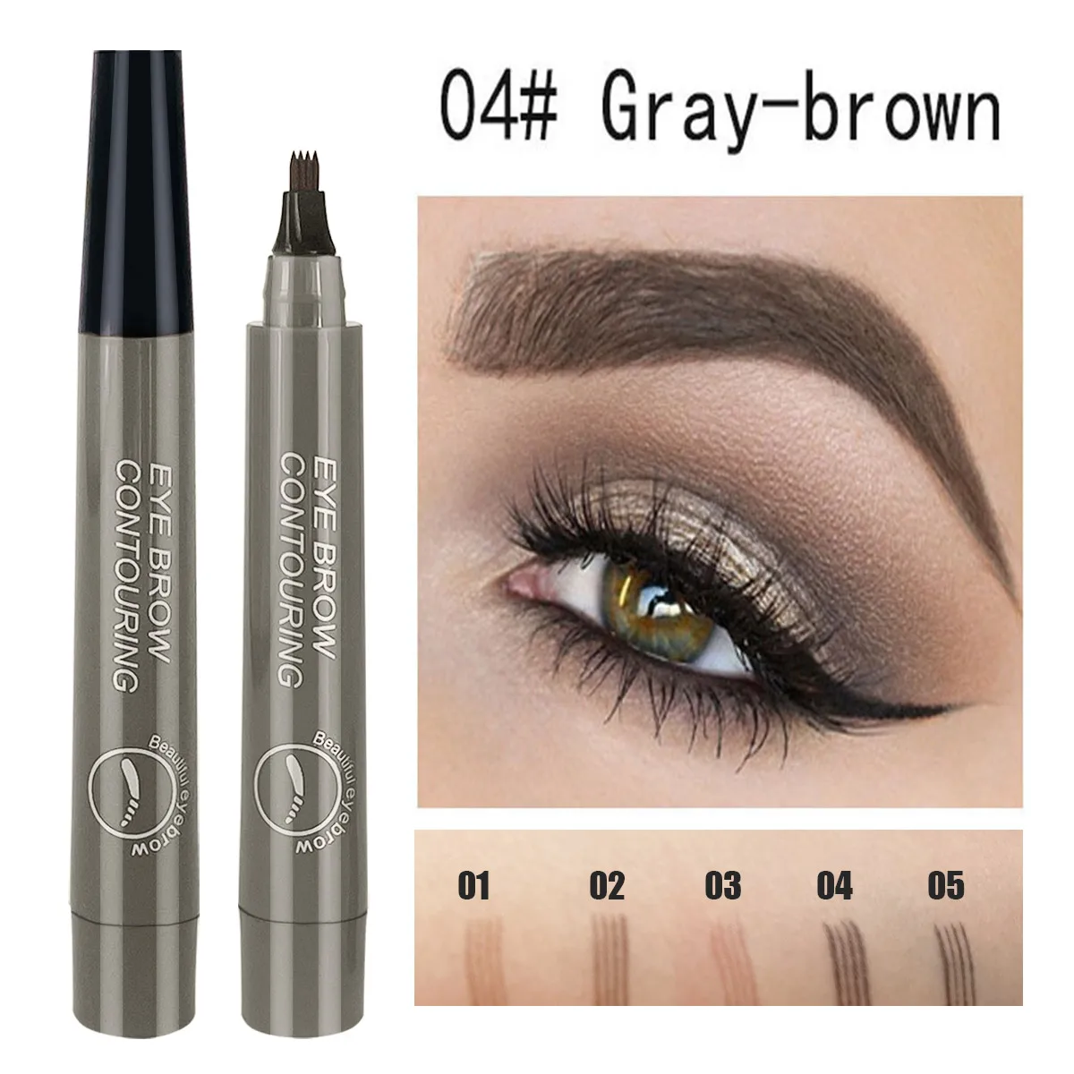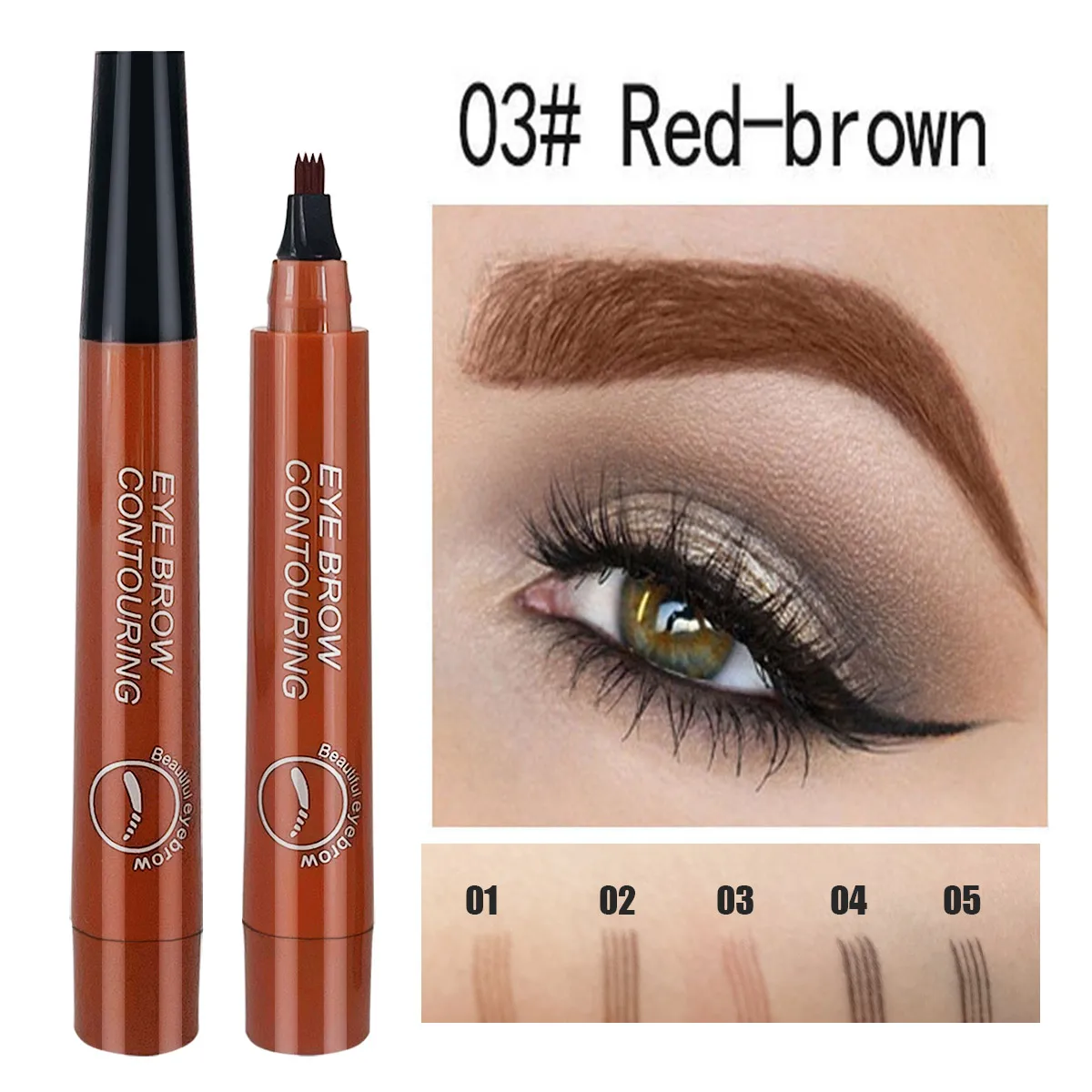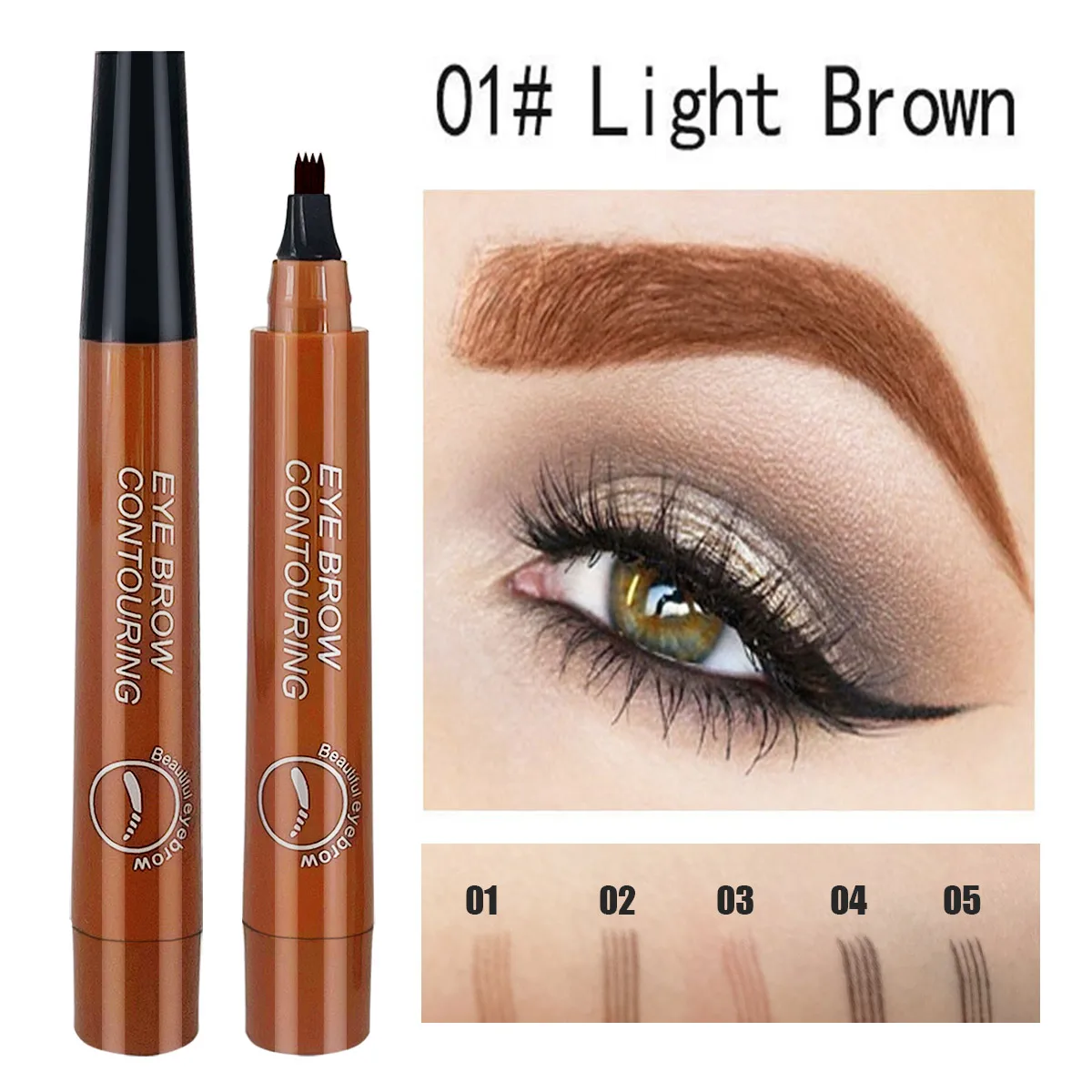 Жидкий карандаш для бровей, водонепроницаемый карандаш для бровей, 4 вилки, кончик, тонкий эскиз, цветная ручка для татуажа бровей, жидкая водная ручка для бровей