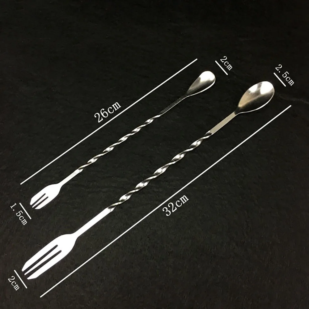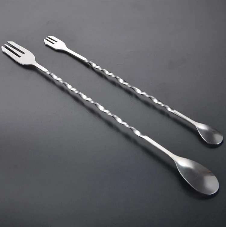 Ложка двойного назначения для бара, одна сторона-ложка, другая-вилка, а ручка-спиральный тип. В настоящее время наиболее распространенным видом на винном столе является перемешивание вина из куриных перьев и т. Д.