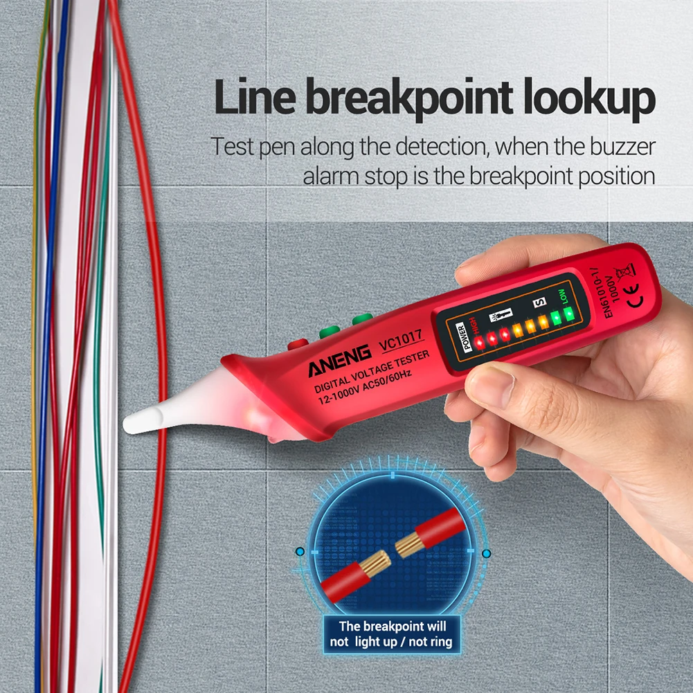 Характеристика: 1. С функцией фонарика, удобно находить линию в тусклом месте 2. Бесконтактная индукция NCV, чем ближе расстояние, тем быстрее звуковой сигнал 3. Большой светодиодный дисплей с подсветкой 4. Обнаружение нулевой линии/прямой сигнал, измерение температуры Спецификация: Модель: VC1017 Материал: корпус из АБС-пластика Размер продукта: около 172.8x38x27.3 мм/6.8x1.5x1.07in Источник питания: 2 батарейки ААА (не входит в комплект) Экран: светодиодный светильник Фонарик: Да Обнаружение нулевой/живой линии: Да Регулируемая чувствительность: Да Звуковой сигнал и светильник: Да Обнаружение точки останова: Да Автоматическое выключение: Да NCV Индукционное Обнаружение: Да Цвет: красный, желтый, синий Примечание: В связи с различиями мониторов и эффектами освещения реальный цвет товара может немного отличаться от цвета на фотографиях. Спасибо! Обратите внимание, что допускается отклонение в диапазоне 1–3 см из-за проведения замеров вручную.