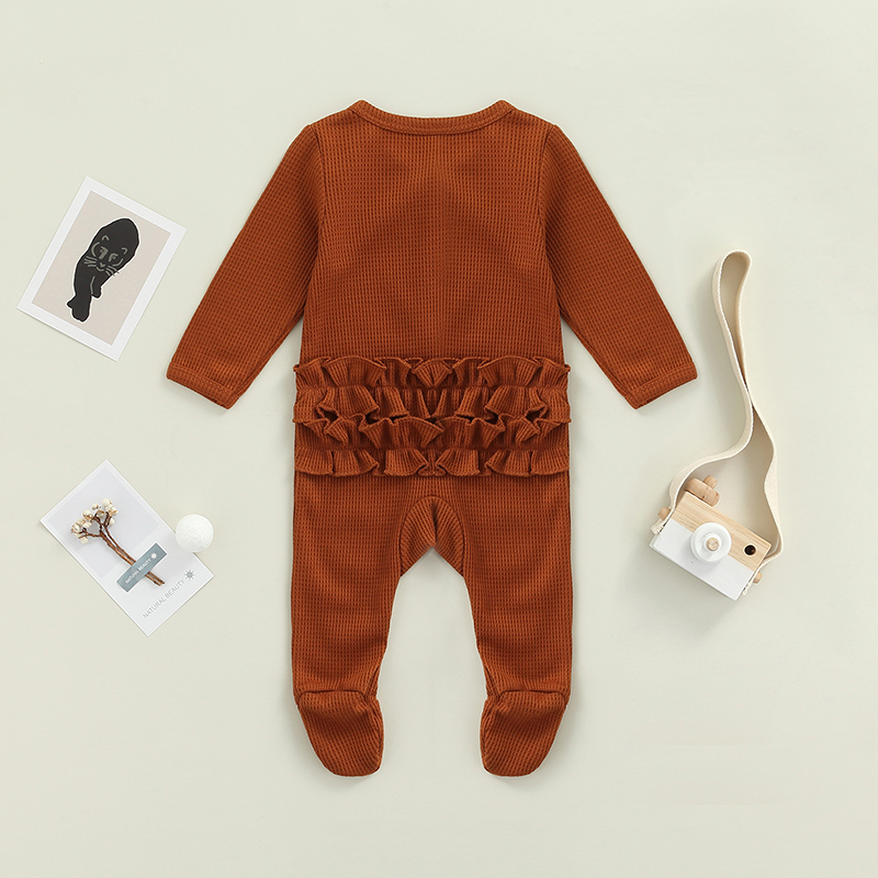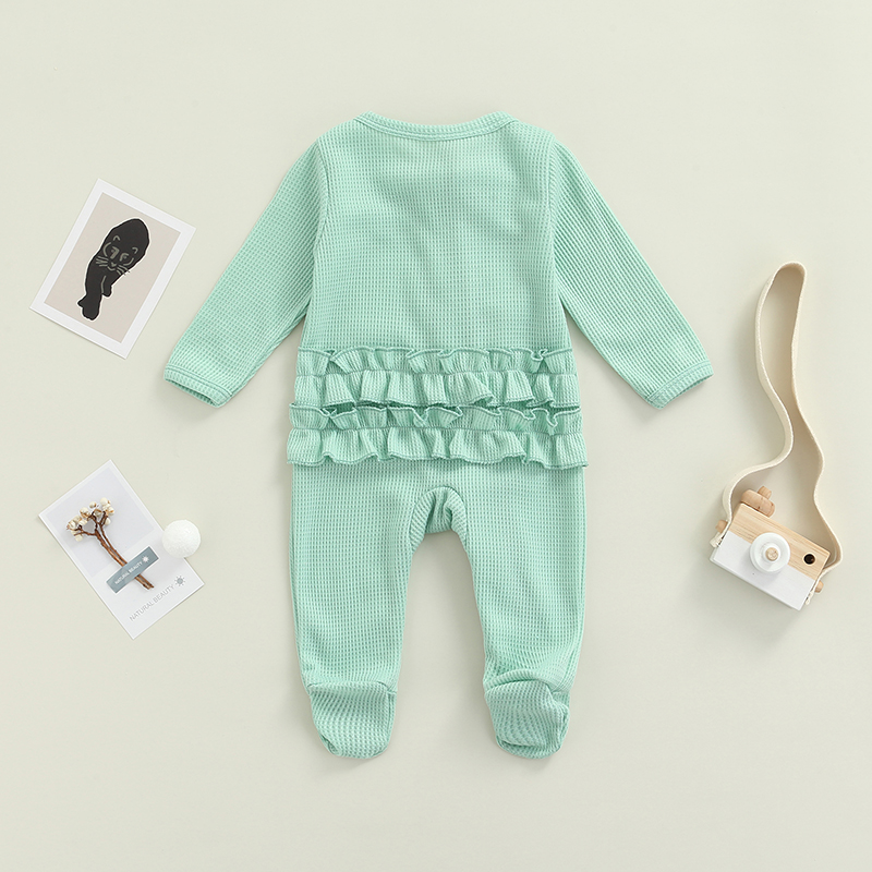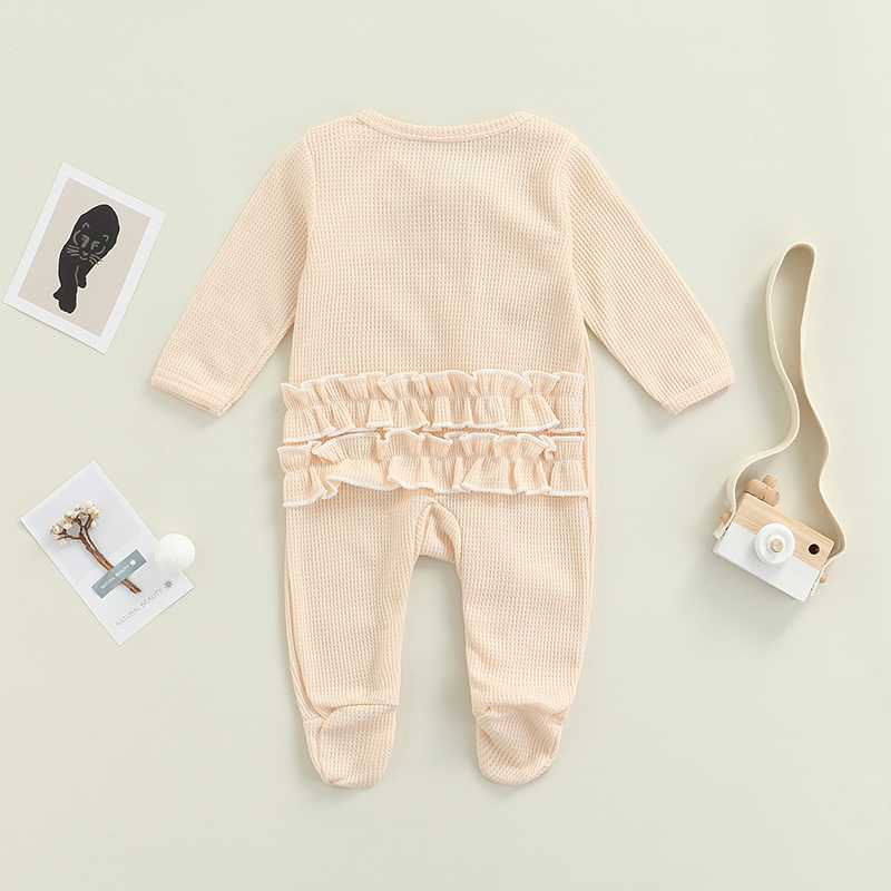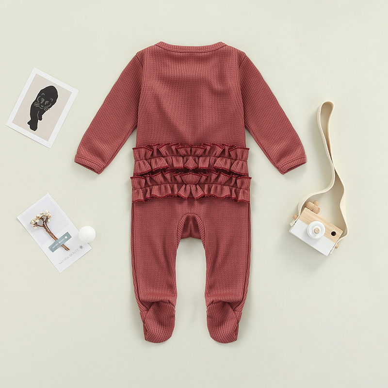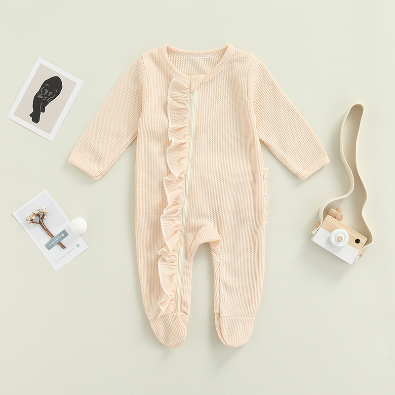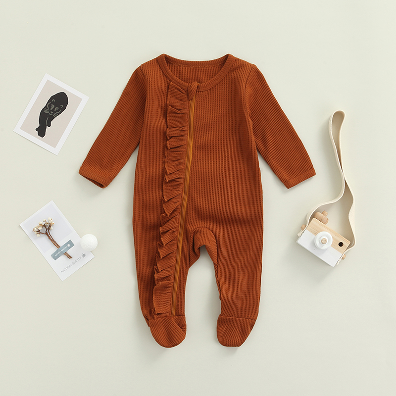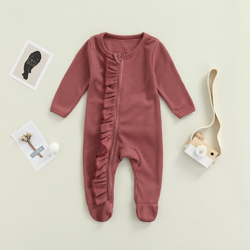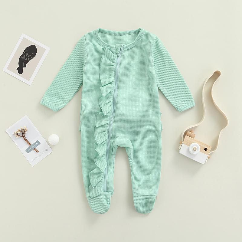 Повседневный однотонный комбинезон на молнии с длинными рукавами для новорожденных мальчиков и девочек 0-6 месяцев, комбинезон с оборками, Одежда для младенцев