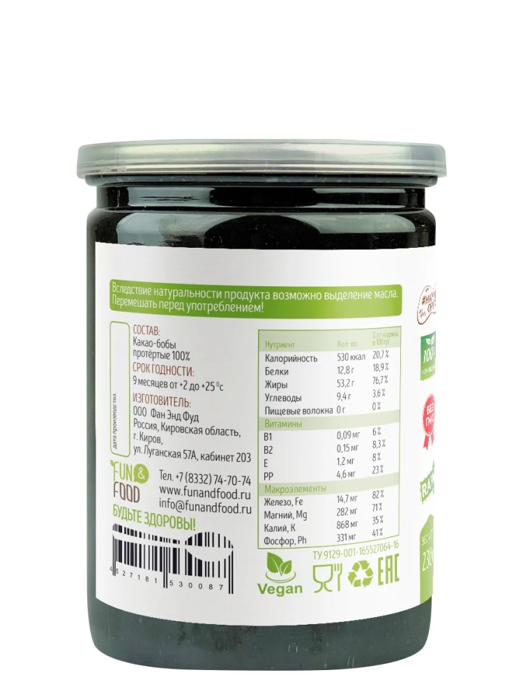 Это не паста!!! Так как в составе только 100% какао, нормальное состояние продукта при комнатной температуре - твёрдое, как у обычной шоколадки. Этот продукт можно растопить на водяной бани до жидкого состояния, и добавлять по вкусу в ваши любимы десерты, либо кушать как тёмный шоколад.