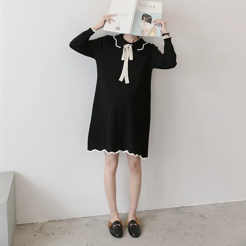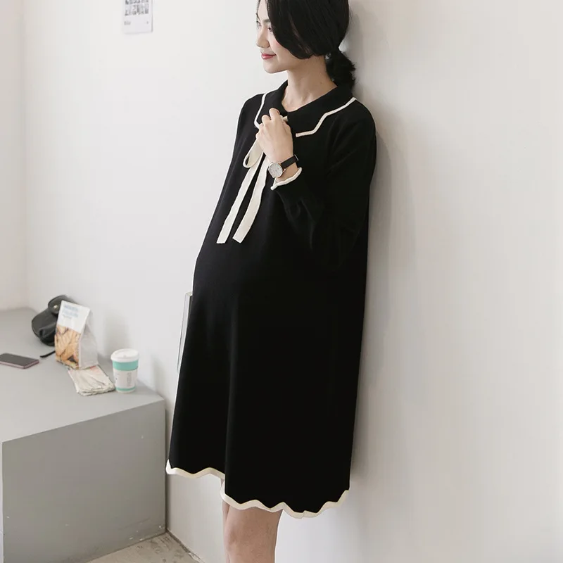Платье для беременных теплое осенне-зимнее трикотажное платье-свитер Одежда для беременных женщин осеннее элегантное платье-свитер для беременных