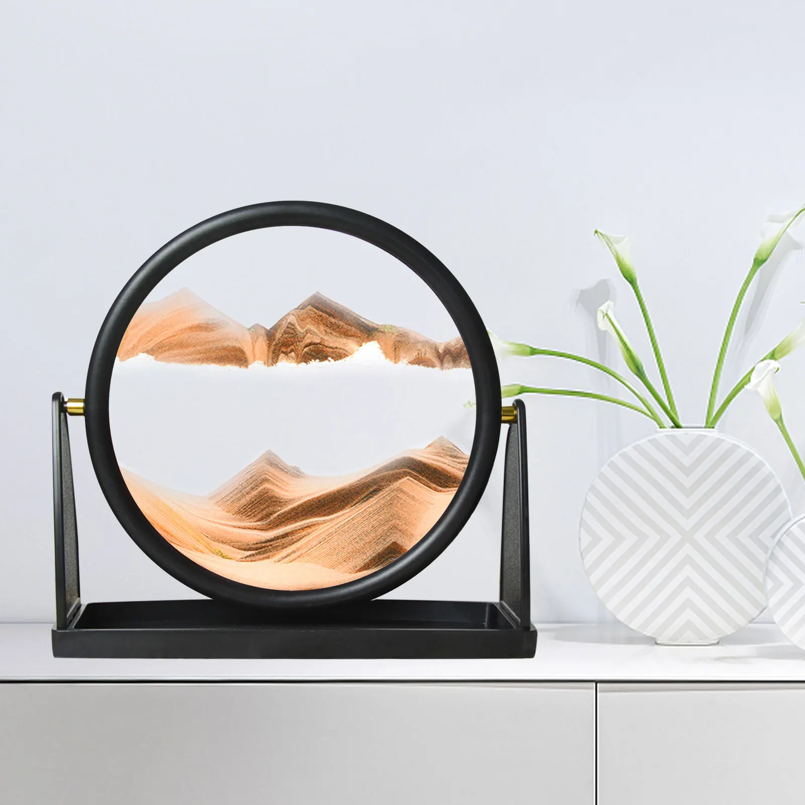 3D динамический песок художественное изображение жидкий движущийся песок художественное движение 10 дюймов круглый стеклянный Глубокий морской песок дисплей струящийся Песок Рамка