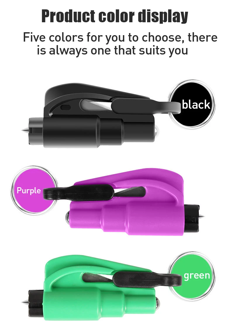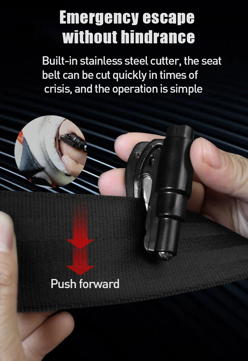 1. Дизайном в виде брелока 2-в-1 Спасательный Инструмент, в чехол возникновения чрезвычайной ситуации, а также с ножом для резки бумаги, чтобы удалить ремня безопасности и разбить окно.