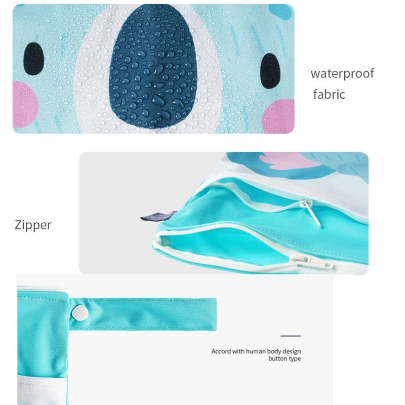 Водонепроницаемые и многоразовые: влажные мешки изготовлены из водонепроницаемого ТПУ. Влажные мешки многоразовые и двухслойные (внутри и снаружи) и без BPA. Они тестируются на безопасность ребенка. Эти сумки имеют гладкую молнию, прочную в использовании.