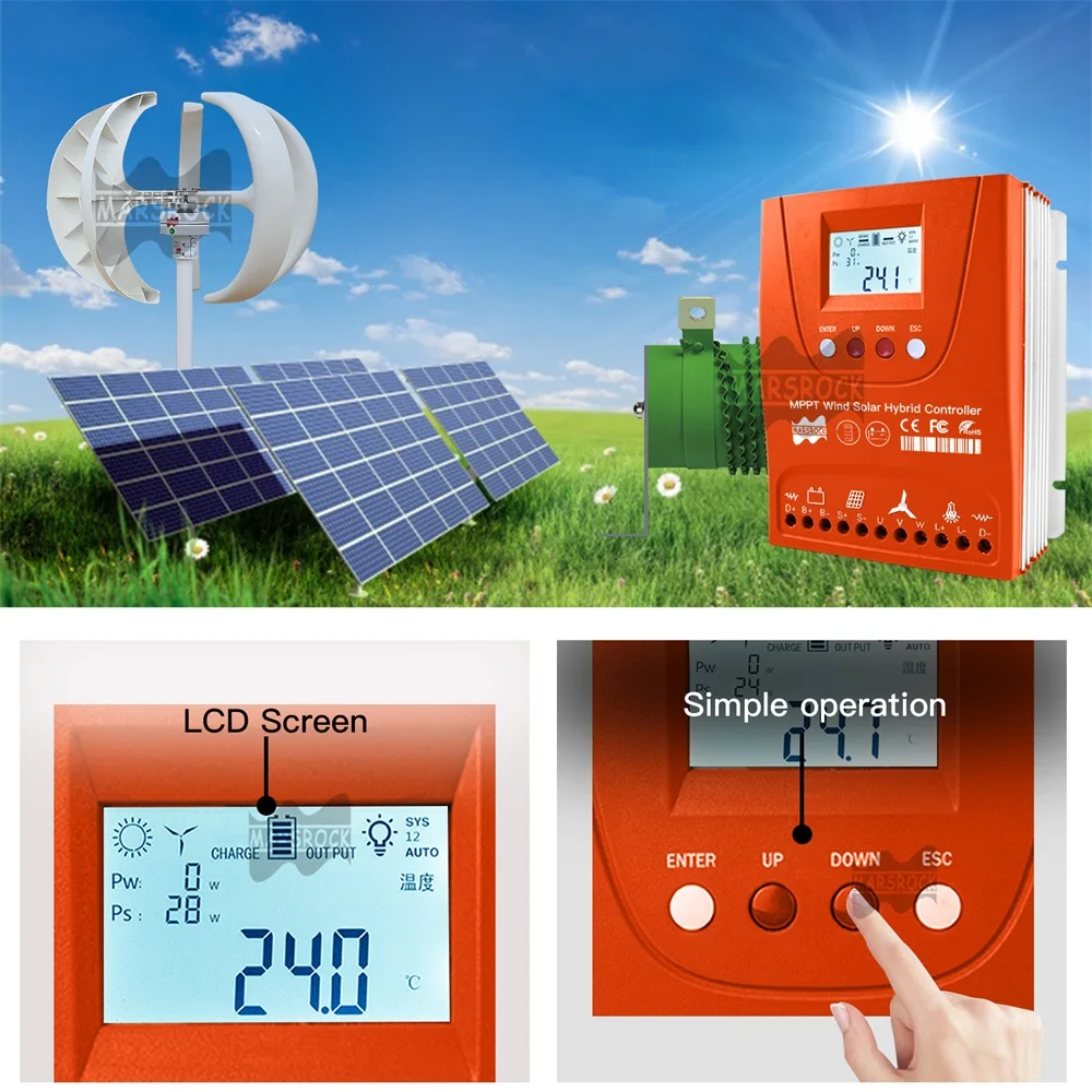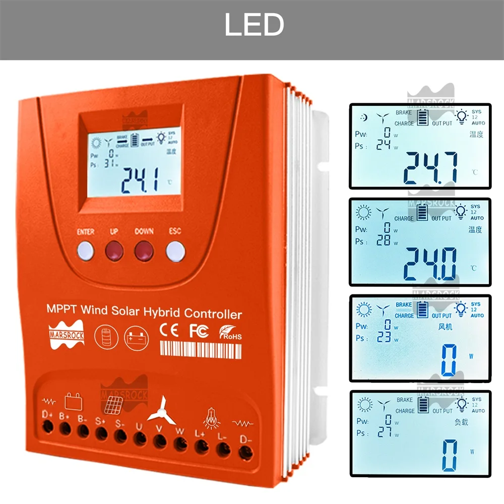 Введение продукта Эта модель специально разработана для гибридной ветровой солнечной системы заряда для маломощной уличной лампы, мониторинга и т. Д. Системы. И подходит для литиевых, гелевых, свинцово-кислотных батарей с полной зарядкой и защитой от разряда. Большой размер ЖК-экрана удобен для параметров (от солнечной энергии, ветра и батареи) запроса и регулировки, но низкое энергопотребление. Он может быть гибко установлен в круизных кораблях, RVs и в помещении. Мощные функции и светильник Размер, но очень хорошее рассеивания тепла имеют свои выдающиеся характеристики. Идеальная защита Защита от перезарядки на солнечной батарее, защита от открытого замыкания, защита от обратного подключения батареи, защита от перегрузки по току и перенапряжения, защита от автоматического тормоза, защита от перегрузки и т. д. High высокая производительность и стабильный контроль чипов;Automatically автоматически сочетается с 12 В/24 В герметичным напряжением батареи;Workпригодный для работы аккумулятор: 1. Герметичный (свинцово-кислотный, гелевый); 2. Литий (тройной литий, литий-железо);LCD ЖК-дисплей отображает напряжение и ток ветра, солнечной энергии и параметров нагрузки; Внутренняя монтажная плата контроллера распыляется для предотвращения пыли, влаги и статического электричества.Wind ветер принимает MPPT boost зарядку; Внешнее сопротивление сброса нагрузки, умное отключение солнечной зарядки. Параметры продукта: