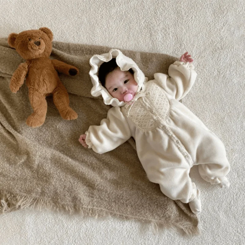 Комбинезон из кораллового флиса для новорожденных мальчиков и девочек, без крышки ↓ ⑤