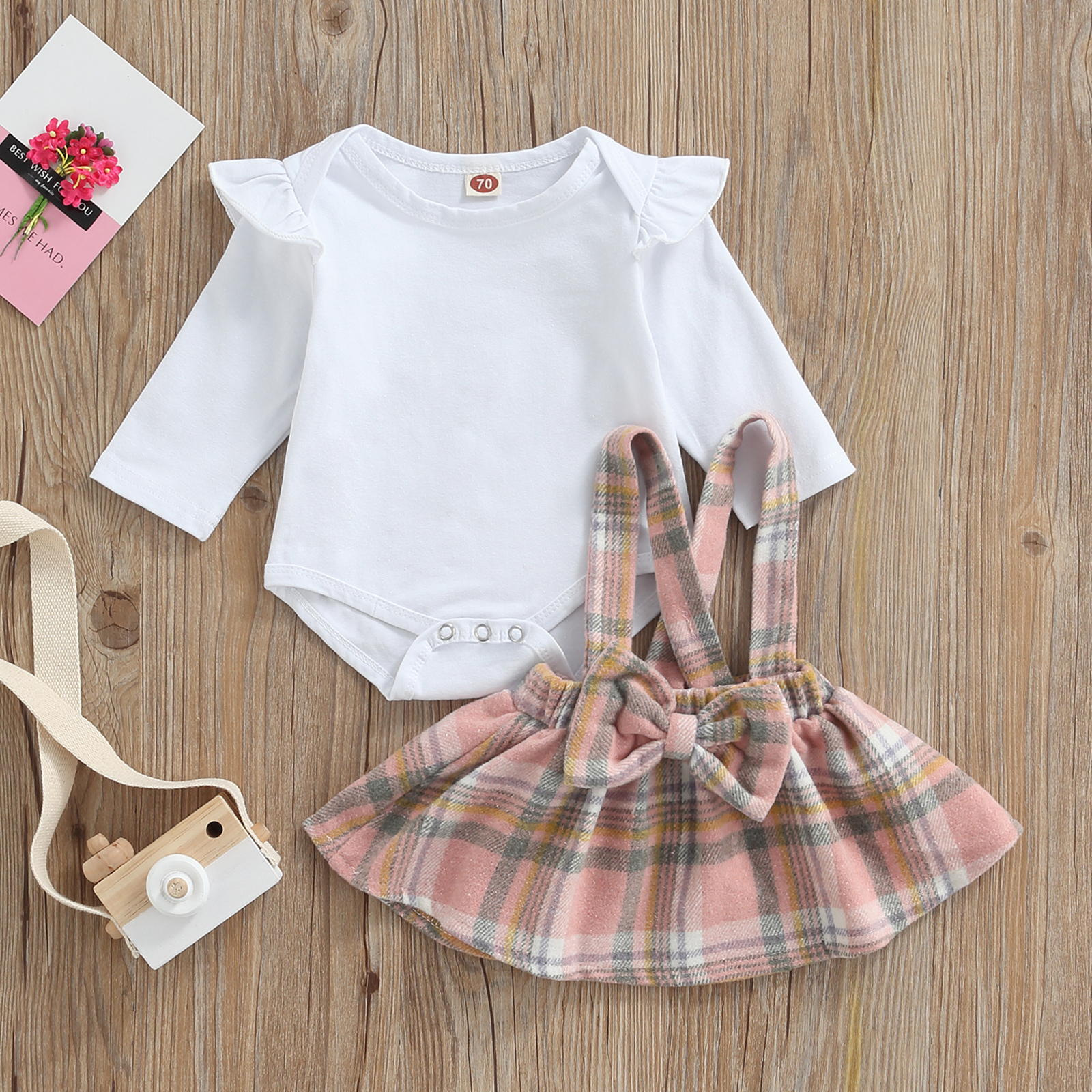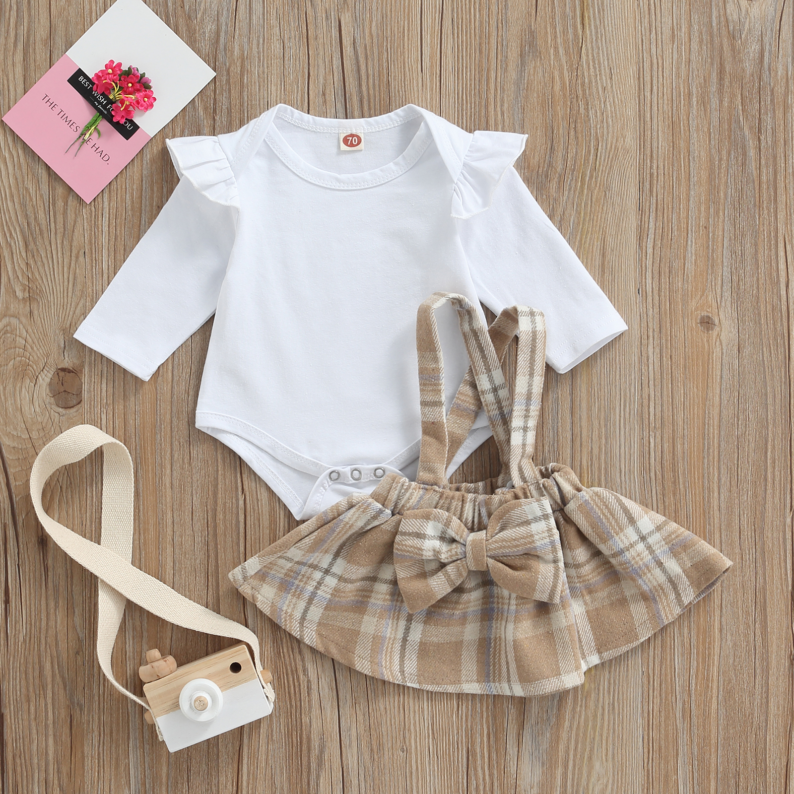 Костюм из двух предметов для маленьких девочек комбинезон с длинными рукавами + сарафан в клетку с юбкой
