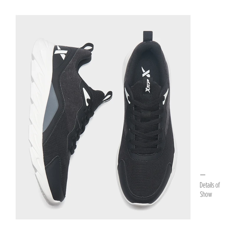 Кроссовки спортивные унисекс размера плюс плоская подошва E-512 черный цвет | Спорт
