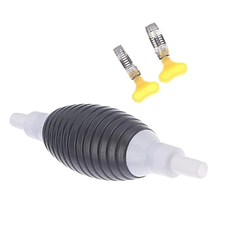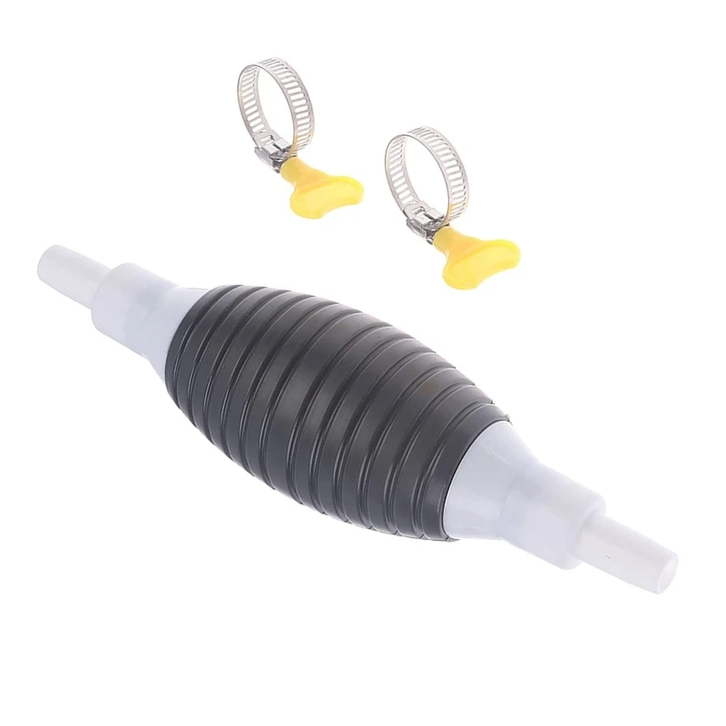 A rubber hand pump that quickly starts siphon liquid flow. The long and thick transparent PVC hose is resistant to oil and high temperature. It is equipped with two yellow fittings that increase the tightness of the hose and ball pump to prevent side leakage.