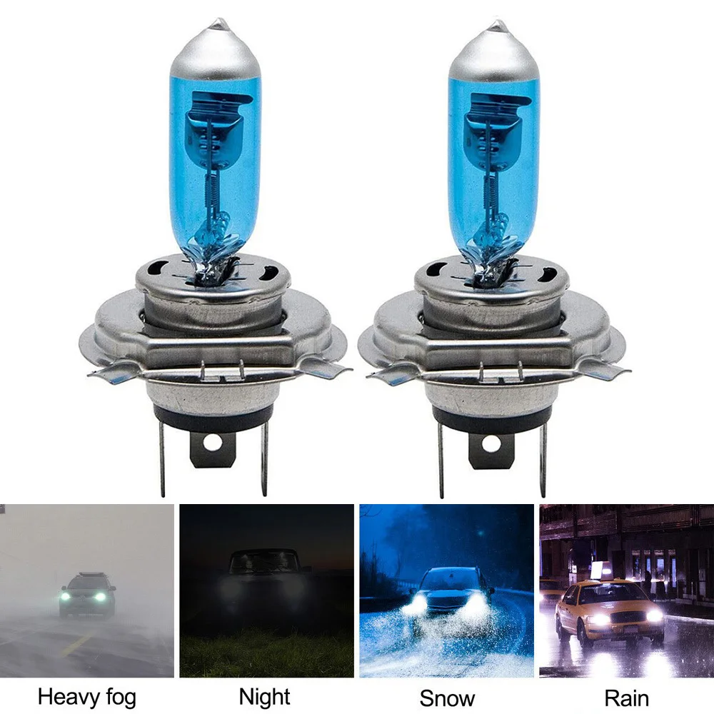 2 шт. H4 ксеноновые лампы 100W 12V 6000K Высокое Яркость холодный белый галогенные лампы головного светильник светодиодный бортовой светильник для автомобиля