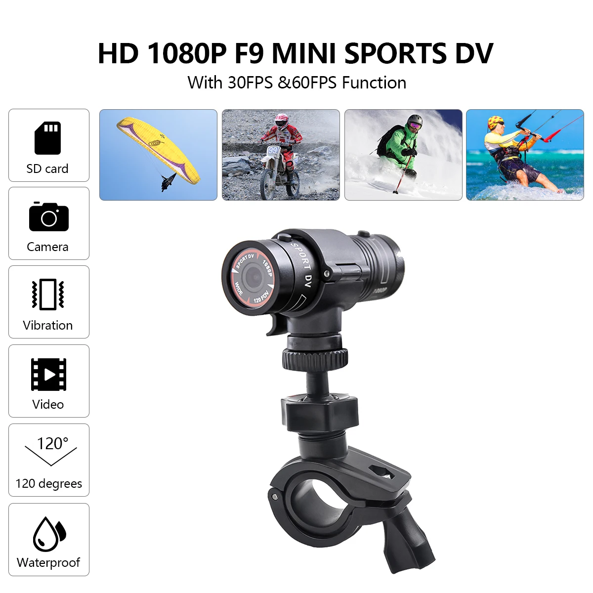 Объектив: 120 градусов широкоугольный объектив с фокусным расстоянием (печатная плата 6 слоев стекла) Разрешение: 1920x1080P 30 кадров в секунду/1280x720P 60 кадров в секунду Видео: 1080P / 720P Фото: 1080P Формат записи: 1920x1080P / 30 fps H. 264 AVI Карта памяти: tf-карта может быть расширена до 32 Гб (не входит в комплект поставки) Интерфейс USB: USB 2,0 Интерфейс питания: 5 в 1 А Микрофон: микрофон Аккумулятор: встроенный литиевый аккумулятор Размеры: около 88X29X30 мм Общий вес: 320 г Размер упаковки: 18*10*3 Особенности: 1. Разрешение видео: 1080 P Full HD 1920x1080 30 fps / 1280x720P 60 fps .1080 p Видеосъемка, 2. Время работы: Время работы составляет 2,5 часов, также важно, удовольствия. Поддерживает карту памяти TF большой емкости (расширяется до 32 Гб, за исключением) 3. Особенности: супер маленький размер, супер широкоугольная камера с высоким разрешением 120 градусов, идеальный комбинированный дизайн, более удобный для различных случаев, мульти-угол 4. Встроенный: Встроенный 1/2 дюймовый малошумный высококачественный Фоточувствительный элемент, может захватывать ультра-четкие изображения, более темные цвета. Встроенный литиевый аккумулятор, съемка видео, до тех пор, пока функция зарядки, встроенный микрофон, встроенный вибромотор, виброподсказки, рабочее состояние 5. Водонепроницаемость: водонепроницаемый дизайн из алюминиевого сплава больше подходит для экстремальных внешних рисков. Операционная система: Windows 7/2000/XP/Vista; OS x10.3.6 или выше Посылка включает в себя: 1 x экшн-Спортивная камера HD 1080P 1 x рукав 1 x ручка для велосипеда/мотоцикла Кронштейн на шлем-1 шт. 1 х Автомобильный кронштейн 1 х USB кабель 1 x Руководство пользователя Примечание: 1. Пожалуйста, подтвердите модель вашего автомобиля перед заказом, чтобы убедиться, что этот товар идеально подходит. 2. В связи с использованием разных по светильник экране монитора фактический цвет товар точно такой же, как и цвет изделия на фото может быть s светильник ly отличается из-за характеристик монитора компьютера.
