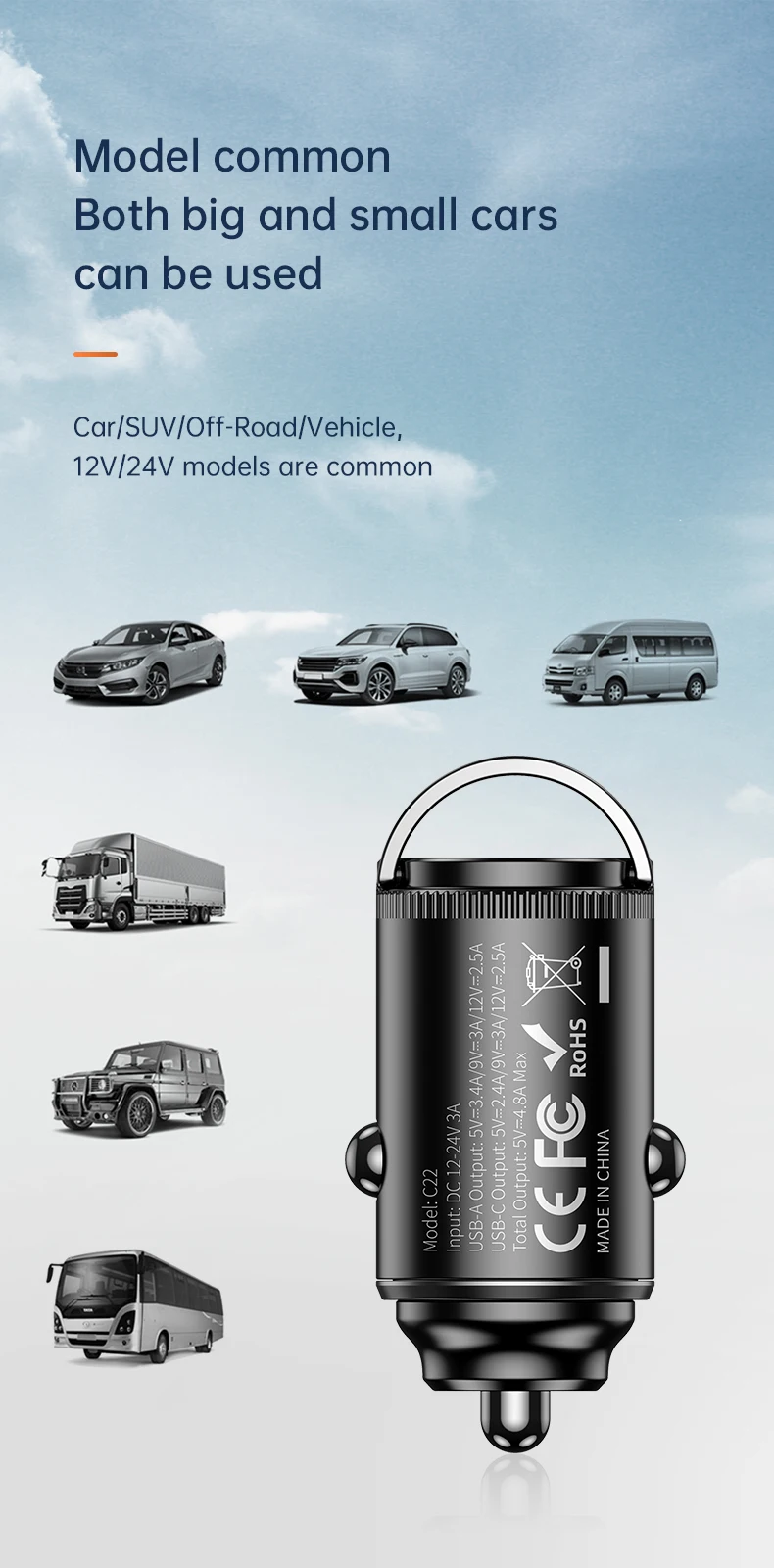 2: вход 12-24 в универсальный для больших и маленьких автомобилей, Интеллектуальный выходной ток, защита вашего электронного оборудования не будет повреждена