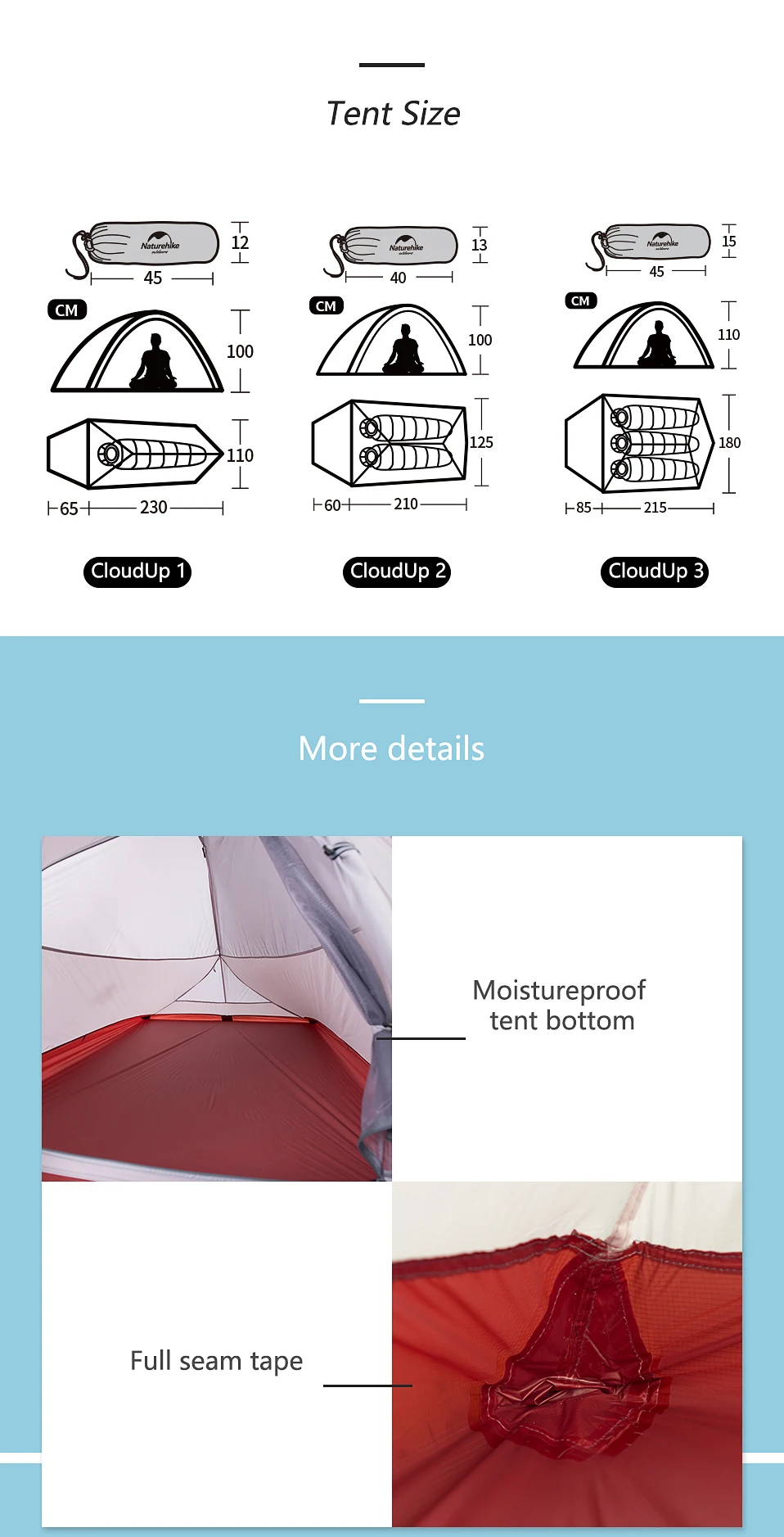 Нижняя палатка: нейлон 20D с силиконовым покрытием (20D) /нейлон 15D с силиконовым покрытием (210T)