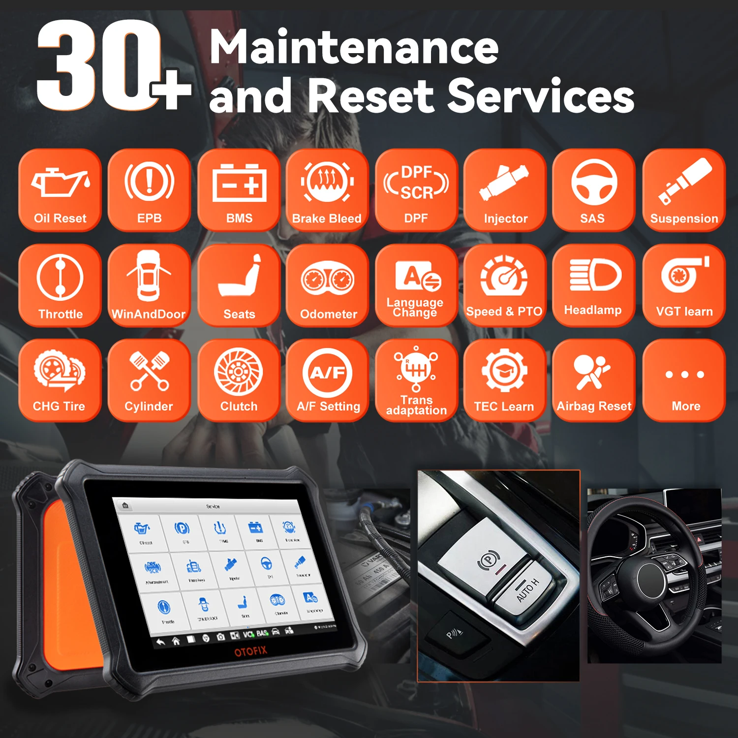В OTOFIX D1 построен на планшетный ПК с системой андроида отличая 7-дюймовый сенсорный экран, встроенный микрофон и динамик, Бортовая камера и флэш-памяти, USB OTG/зарядки, И слот для карты MicroSD для неограниченного хранения данных.