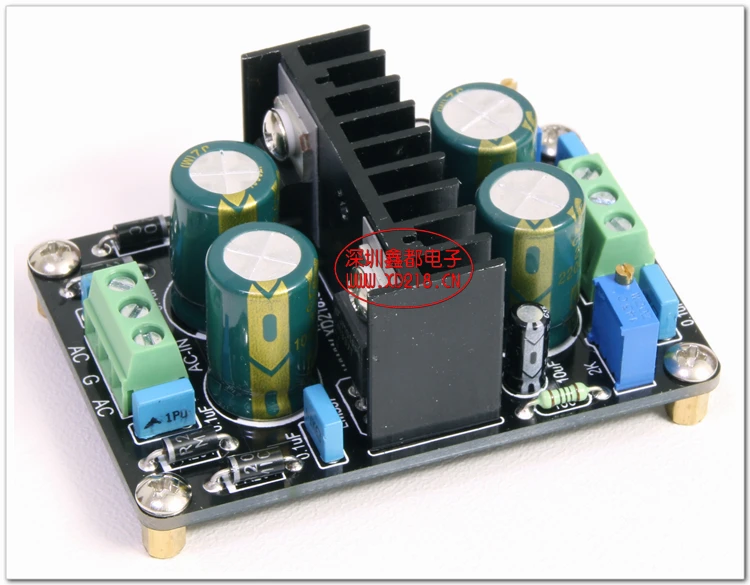 Use 4 FR204 high-speed diodes for rectification, and connect a German Siemens small polydiene blue capacitor in parallel at both ends of each diode. The green filter capacitor is GSK high-speed and low-resistance. The voltage regulator part uses LM317 and LM337.