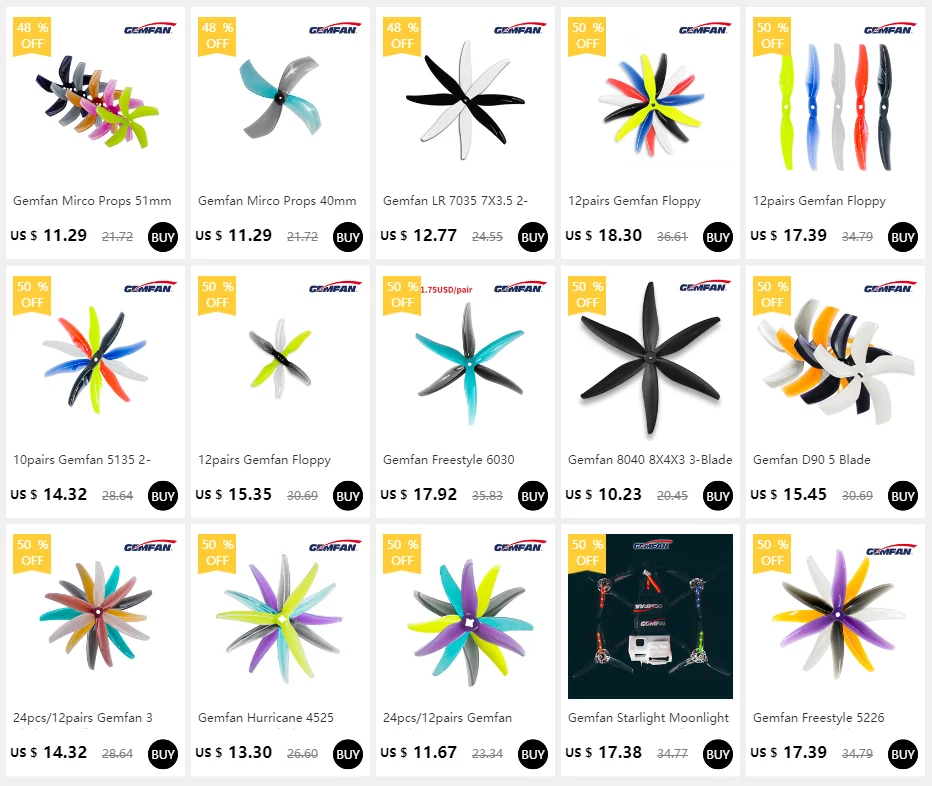 Show more12 пар Gemfan 1210 31 мм 2 Лопасти PC пропеллер прочный прозрачный черный для RC FPV Фристайл Tinywhoop микро дроны DIY части