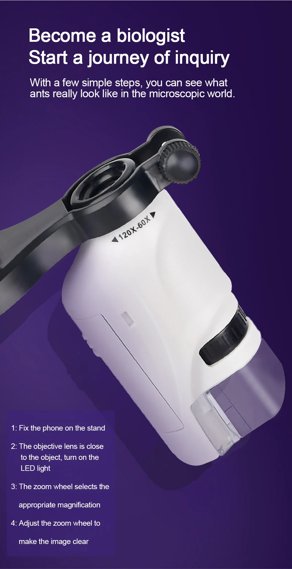 2. Можно переключать несколько раз, 60X-120X, удовлетворить потребности студентов.