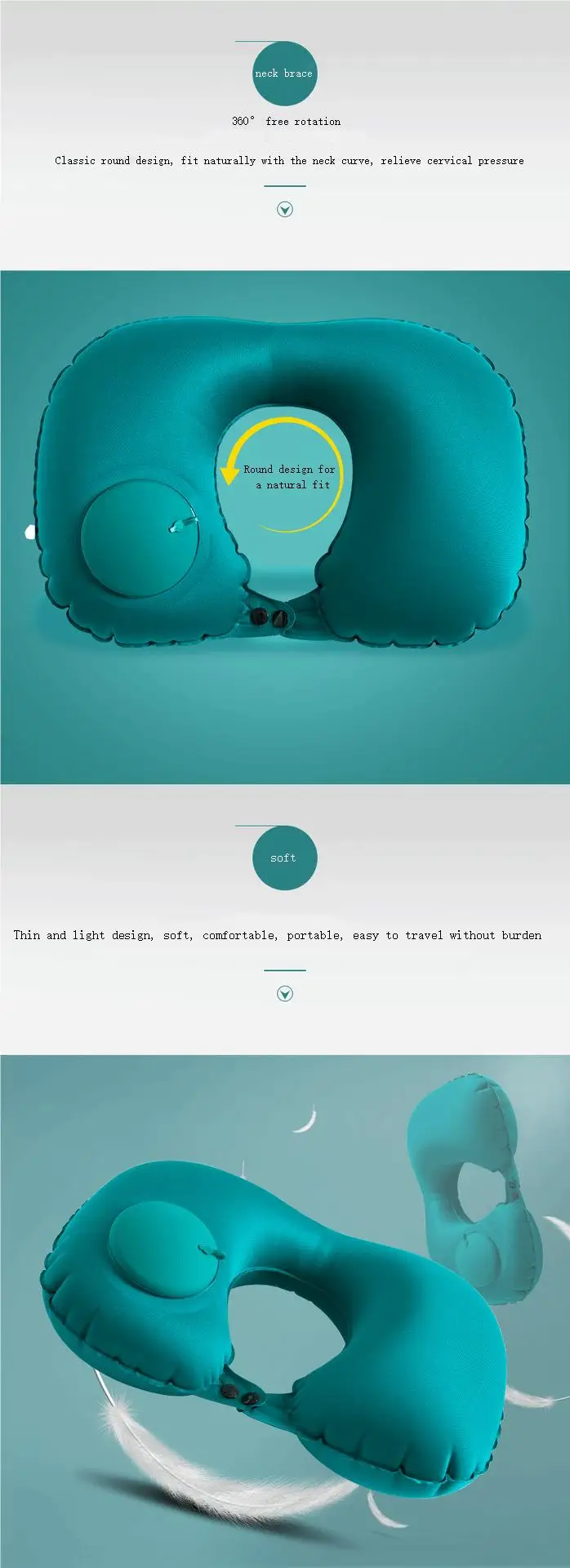 1. Нажатие автоматической надувной подушки подходит для использования на открытом воздухе, например, самолетов, поездов, автомобилей, автомобилей и т. д., и подходит для офисных обеденных перерывов.